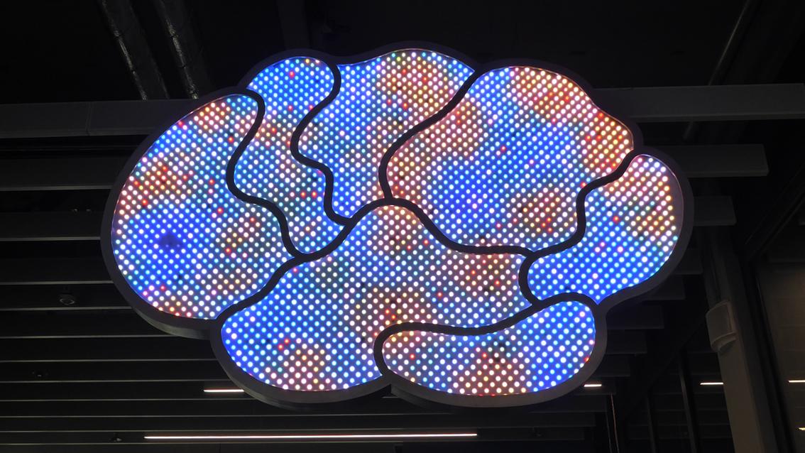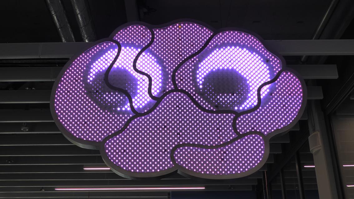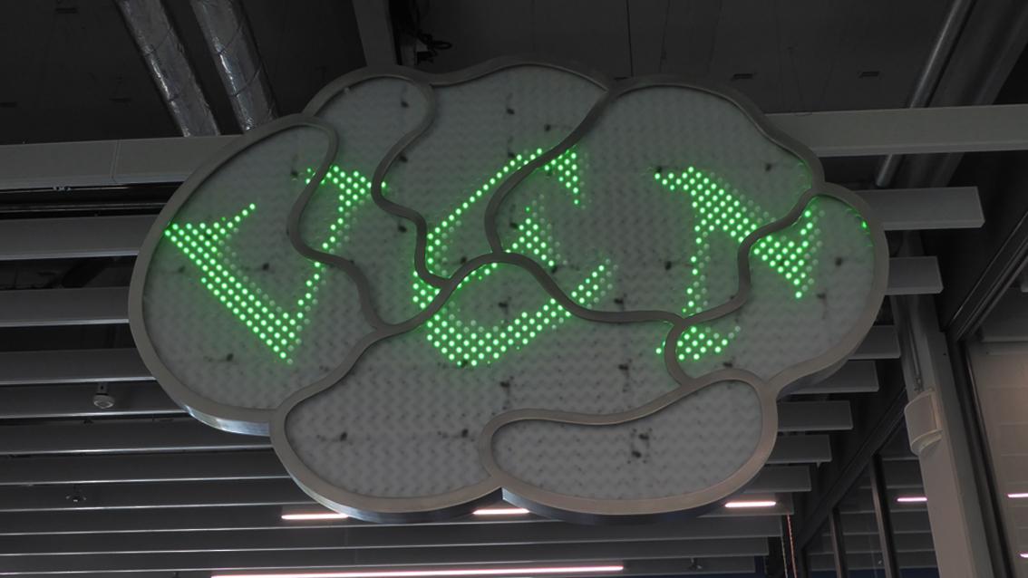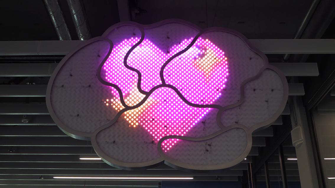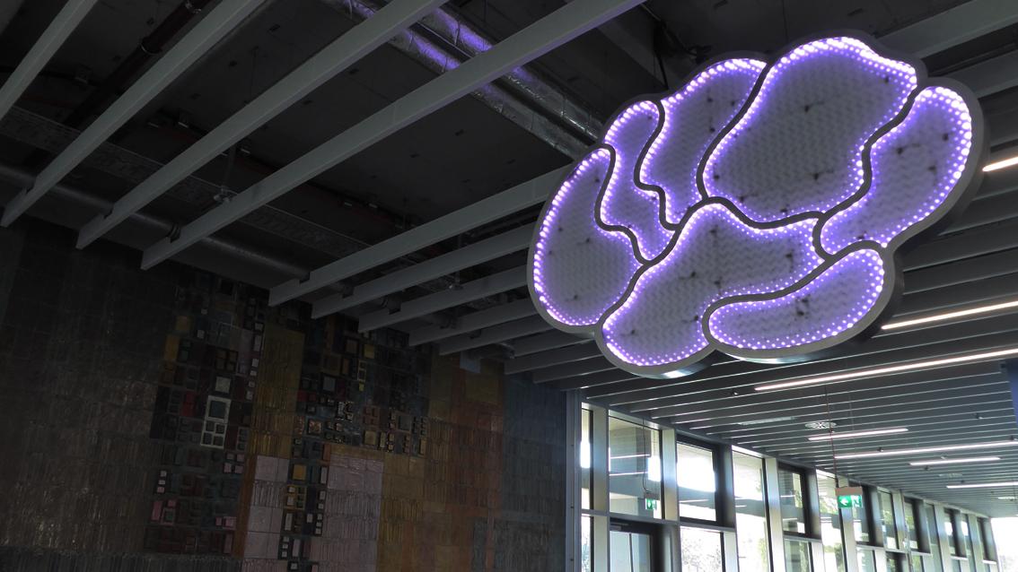 Im Foyer der Heinrich-Hertz-Schule befindet sich eine interative Plastik mit integrierter videofähiger Bildfläche von Johanna Wagner. Sie ist an der Decke befestigt, die Unterkante hat ca. 270 cm Abstand zum Boden. Die Arbeit wurde im Rahmen eines Kunst und Bau Wettbewerbs ausgewählt. Die Außenform und Binnenstruktur des Werkes erinnern an eine Wolke oder an den Querschnitt eines Gehirns. Die generierten Bilder zeigen Animationen, Schrift, Verweise auf Videospiele und Emojis. Die Plastik steht in einem spannungsvollen Kontrast zum benachbarten Relief von Eleonore Bucerius von 1962.