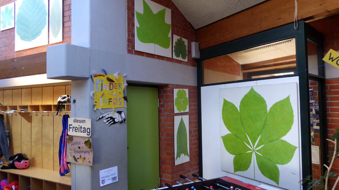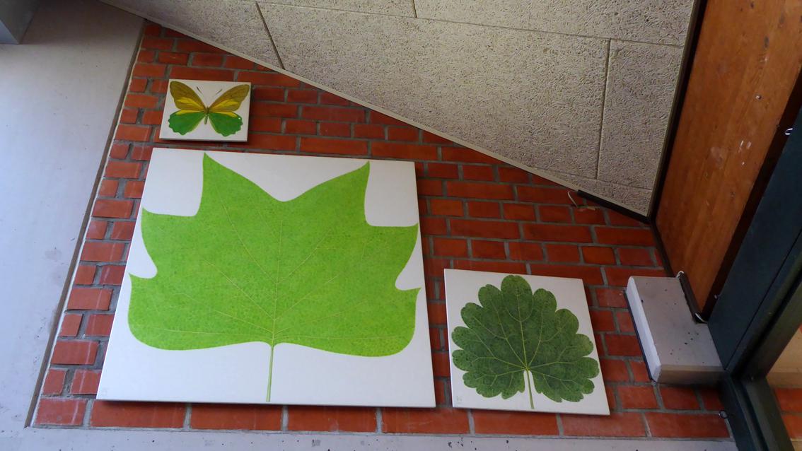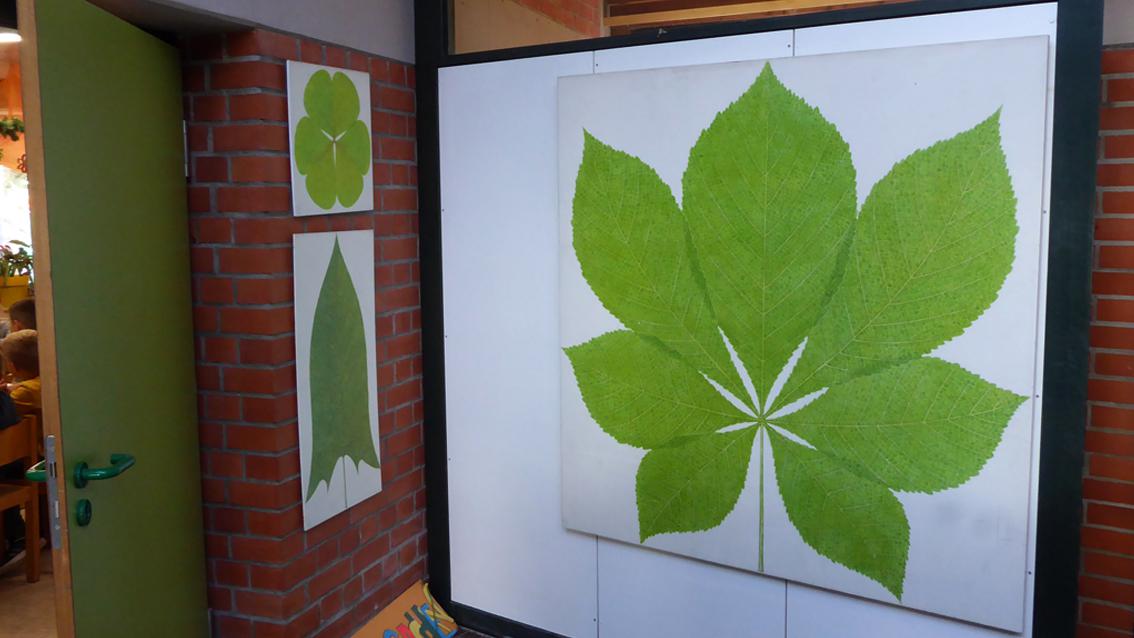 Hans-Martin Müller verwirklichte im Jahre 1985 eine neunteilige Bilderfolge für die städtische Kindertagesstätte in Knielingen. In einer einfachen, jedoch jede Einzelheit genau beobachteten Bildsprache stellt der Künstler den Kindern unterschiedliche Blattformen im Verbund mit einem Schmetterling vor. Das Farbspektrum umfasst aufgehellte und getrübte Abstufungen der Farbe Grün (Blätter) sowie Gelb- und Ockertöne (Schmetterling). Die bemalten Holztafeln, die an vergrößerte Karten des Gedächtnisspiels ‚Memory‘ erinnern, sind auf verschiedenen Höhen im Eingangsbereich der Einrichtung verteilt. Hans-Martin Müller studierte Grafikdesign und Kunst an der Hochschule in Pforzheim. Er verstarb im August 2018 in Karlsruhe.