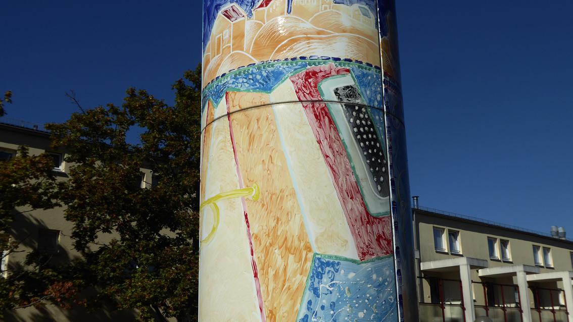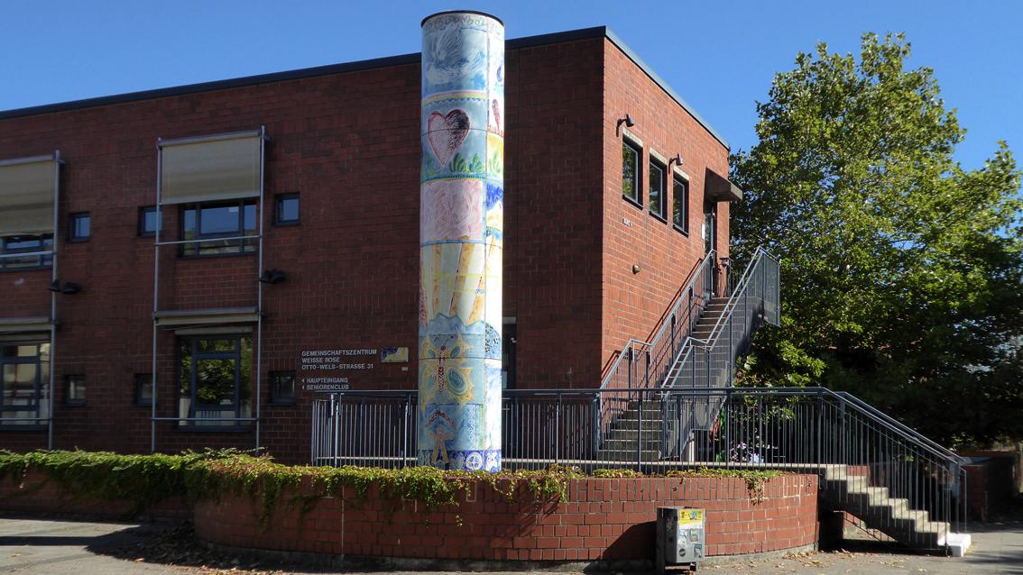 Das Künstlerpaar Barbara Jäger und OMI Riesterer ist im Karlsruher Stadtraum mehrfach vertreten. Von der Malerin und dem Bildhauer stammt unter anderem das Waldenserdenkmal in Palmbach (2015). Die Bürgersäule von 1983 vor dem Jugend- und Gemeinschaftszentrum 'Weiße Rose' in Oberreut ist ca. neun Meter hoch und hat einen Durchmesser von ca. einem Meter. Die Säule ist mit volksnahen, ortsbezogenen Motiven versehen, die in Zusammenarbeit mit Jugendlichen des Stadtteils erarbeitet und auf die 'Bürgersäule' übertragen wurden. Am Eingangsbereich erinnert eine ebenfalls von dem Künstlerpaar gestaltete Bronzeplatte an den Widerstand der studentischen Gruppe um Sophie und Hans Scholl mit dem Namen 'Weiße Rose' gegen die nationalsozialistische Willkür.
