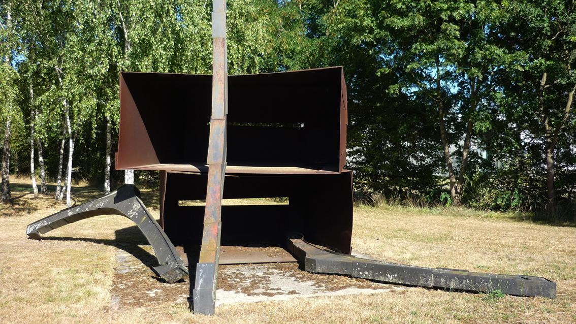 Zur Zeit der Installierung dieses Kunstwerks war das zugeordnete Gebäude das Kreiswehrersatzamt, ein Ort an dem damals unter anderem junge Männer gemustert wurden. Die Arbeit von Elisabeth Wagner, die an der Staatlichen Akademie der Bildenden Künste Karlsruhe bei Wilhelm Loth studierte, verweist mit Titel und Ausstattung auf diesen Umstand. ‚Einzug' heißt das Werk und es besteht aus spintähnlichen, einfachen Kästen, denen übergroße Kleiderbügel zugeordnet sind. Das verwendete Material ist Cortenstahl, eine Stahlvariante, die nach Anrostung eine witterungsbeständige, rotbraune Patina bildet.