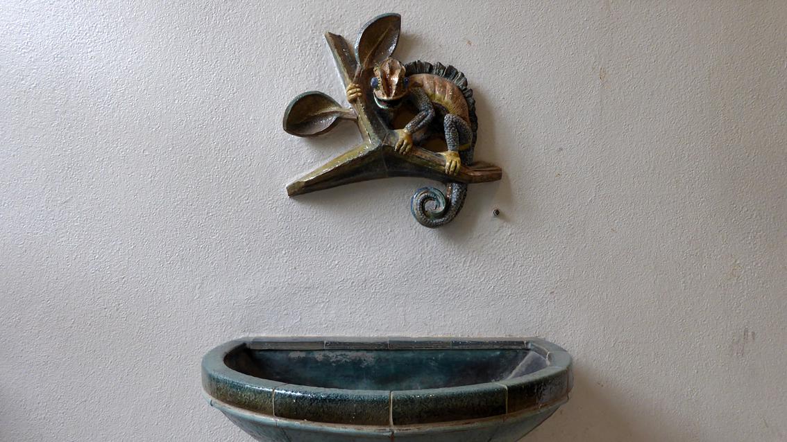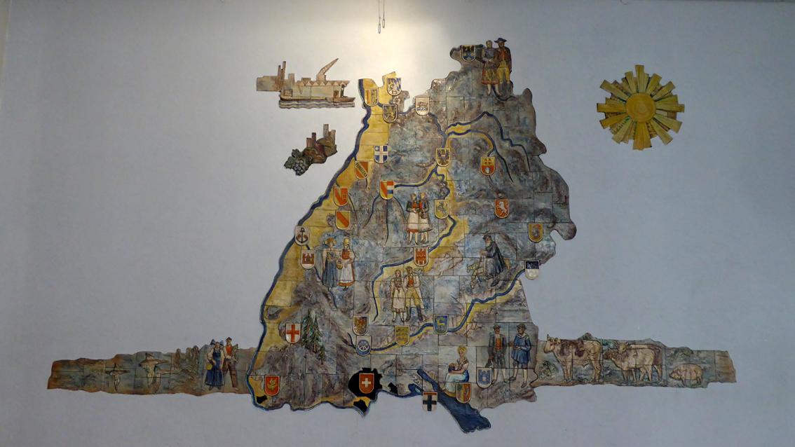 Im Innenbereich der Draisschule befinden sich mehrere Werke des Keramikers und Bildhauers, der in Karlsruhe mehrfach vertreten ist. Nach einer Lehre in der Staatlichen Majolika Manufaktur erlernte er die Bildhauerei unter anderem bei Hermann Föry, der ‚die Marktfrau‘ hinter der ‚Kleinen Kirche‘ schuf. Carl Egler verstarb im Jahre 1982 in Karlsruhe. Im Foyer des Altbaus empfängt ein Ensemble von Majolika-Arbeiten die Betrachtenden. Ein fein gestaltetes Reptil ist gegenständliches Motiv eines kleinen Brunnens, die zentrale Stütze ist von kleinteiligen, farbig fein abgestuften Kacheln umgeben und eine großformatige Wandarbeit verweist in einer eingängigen Bildsprache auf die Besonderheiten der Regionen des Landes Baden-Württemberg, das im Jahre 1952 gegründet worden war. Bei der Verwirklichung dieser Arbeit wurde Carl Egler von seinem Künstlerkollegen Leo Faller unterstützt, einem Mitglied der ‚Künstlerkolonie Daxlanden‘.