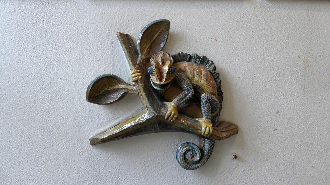Größe Wandbild ca. 300/450/5 cm, Säule Höhe ca. 370 cm, Reptil ca. 60/60/50 cm