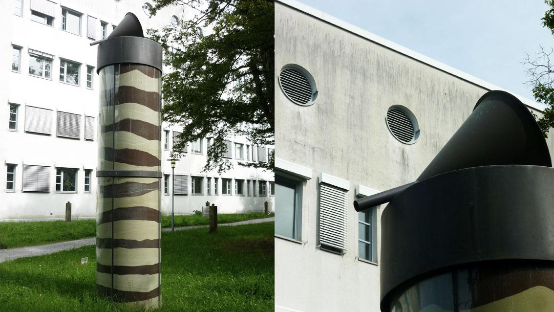 Die vielteilige Installation "Anaufhinterinnebenüberuntervorzwischen (Hirnlandschaft)" des dänischen Künstlers befindet sich auf einer Freifläche des ‚Allgemeinen Verfügungs- und Forschungsgebäudes Umwelt‘ am KIT. Sie besteht aus 67 Sockeln aus Sandstein (je ca. 130/25/25 cm), auf denen sich naturgetreue Abgüsse des menschlichen Gehirns (je ca. 11/12/16 cm) befinden. Größtenteils handelt es sich um Eisengüsse, sieben Gehirne wurden in anderen, auch eingefärbten Materialien gegossen. Ergänzt wird das eine weite Fläche einnehmende Werk durch eine große Glasröhre (Höhe ca. 400 cm, Durchmesser ca. 100 cm), die mit Erde gefüllt ist und an deren oberen Ende sich ein Messingtrichter befindet. Das Kunstwerk will, so der Künstler, „sinnbildhaft auf das geistige, intellektuelle Potential der zahlreichen interdisziplinären Projektgruppen, die am Forschungszentrum arbeiten“ hinweisen.