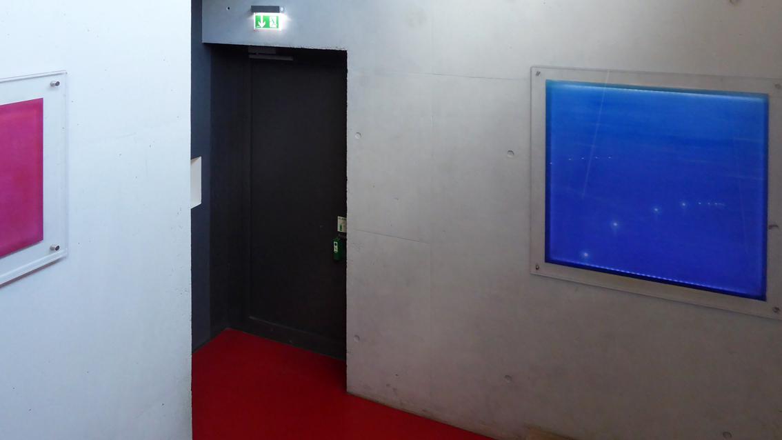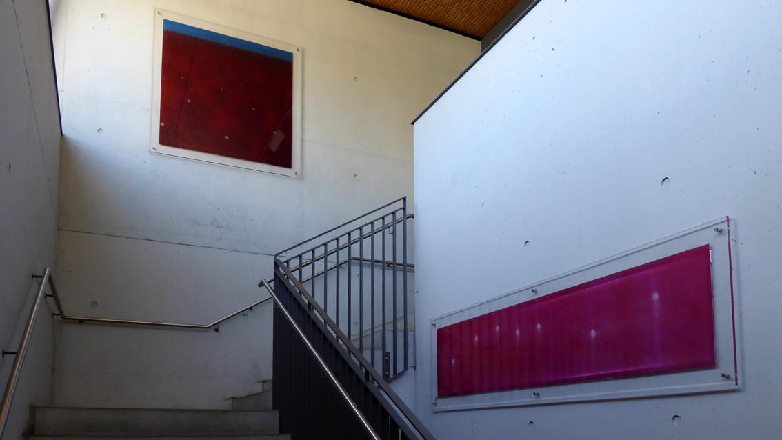 Im funktionalen Treppenhaus der Weiherfelder Albschule setzte die Künstlerin künstlerische Akzente. Sie fügte dem Bestand drei weitere ‚Fenster‘ hinzu, die ausschnitthaft Blicke auf imaginäre Landschaften freigeben. Die Motive beziehen sich auf Leinwandbilder, die fotografisch reproduziert, auf transparenten Film belichtet und hinter Plexiglasscheiben kaschiert wurden. Durch die rückseitige Beleuchtung wird die Farb- und Leuchtkraft gesteigert. Izumi Kobayashi wurde in Sendai/Japan geboren, studierte zwischen 1983 und 1989 an der Staatlichen Akademie der Bildenden Künste Karlsruhe, wo sie im Jahre 1990 von Prof. Per Kirkeby zur Meisterschülerin ernannt wurde. Ihre künstlerische Arbeit wurde durch verschiedene Stipendien und Kunstpreise gewürdigt.