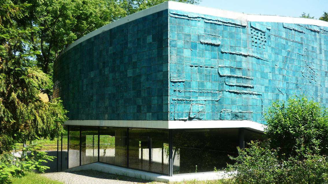 Der Künstler war einer der bekanntesten Professoren an der Staatlichen Akademie der Bildenden Künste Karlsruhe. Anfang der 60er Jahre des letzten Jahrhunderts entwarf Georg Meistermann Reliefs für die Außenwände des Hörsaals am Institut für Technische Thermodynamik und Kältetechnik am KIT. In Zusammenarbeit mit der Staatlichen Majolika Manufaktur Karlsruhe entstanden unterschiedlich gestaltete Kacheln in Blau, die den geschlossenen Gebäudekomplex sichtbar auflockern.