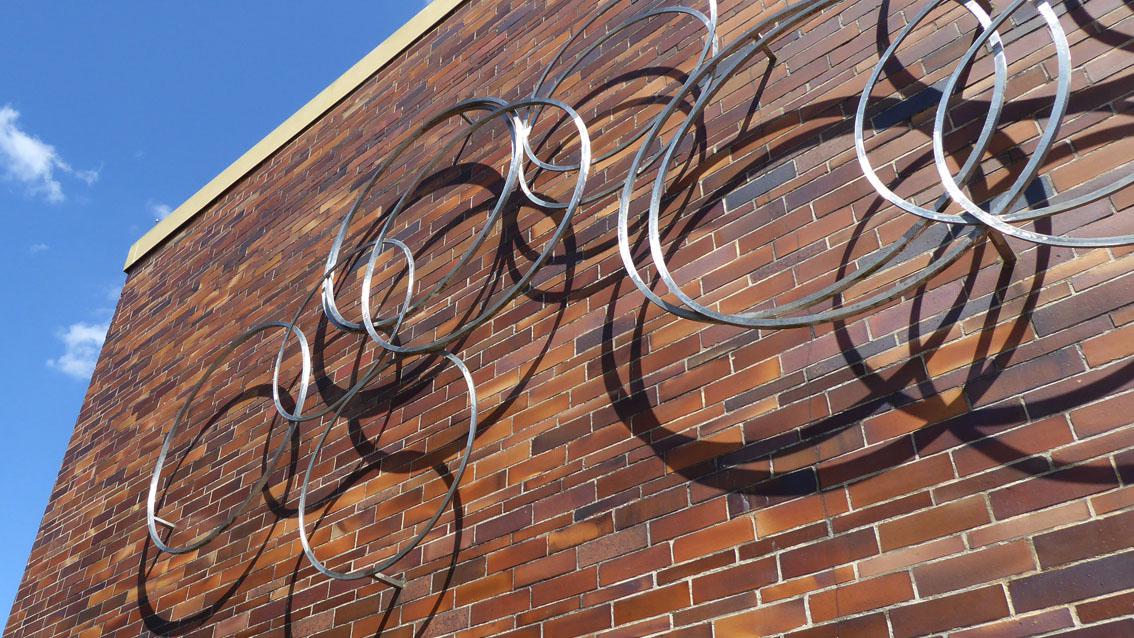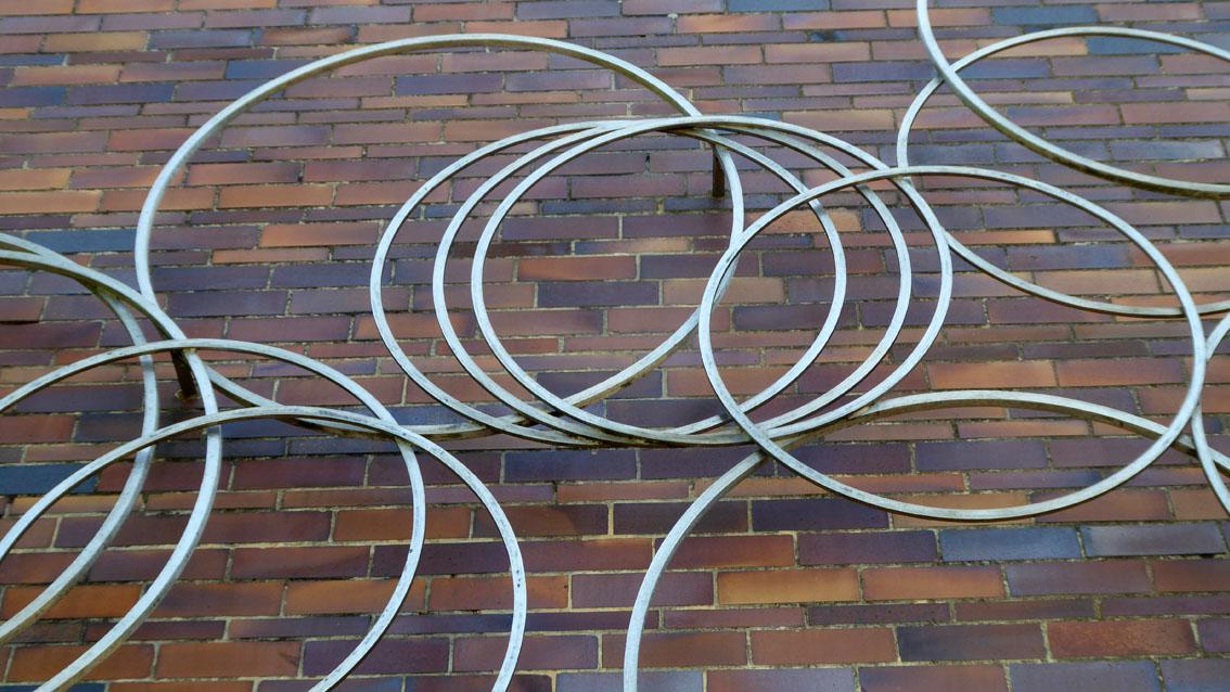 Der Künstler arbeitete schwerpunktmäßig im Bereich Kunst am Bau. Wichtige bildhauerische Impulse verdankte er Erwin Spuler, der den Bürgersaal des Rathauses künstlerisch gestaltete. Trust wurde 1926 in Karlsruhe geboren und verstarb im Jahre 1986 in Baden-Baden. Für die Werner-von-Siemens-Schule in der Nordweststadt entwickelte der Bildhauer und Grafiker eine Fassadengestaltung an der Westseite der Sporthalle. Das horizontal ausgerichtete Kunstwerk wurde in einer ungegenständlichen Formensprache in der Tradition der geometrischen Abstraktion ausgeführt. Es besteht aus neben- und übereinandergeschichteten Ringen, die als Schmiedearbeit aus Nirosta Edelstahlbändern mit den Profilen 20/20 mm und 20/10 mm gefertigt und mit unterschiedlichem Abstand zur Wand im Außenbereich befestigt wurden. Vor allem bei Sonneneinstrahlung entfalten die Ringe, die das olympische Symbol variantenreich deuten, ein kontrast- und reflexreiches Licht- und Schattenspiel.