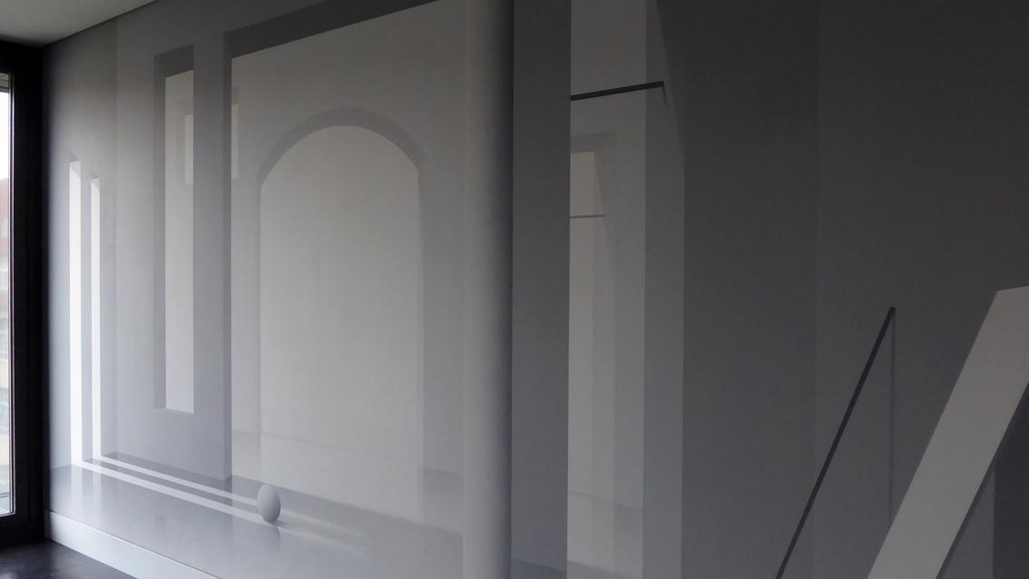 Im oberen Foyer der Bundesanwaltschaft befinden sich auf gegenüberliegenden Wänden zwei Gemälde, die den Blick auf zentralperspektivisch konstruierte Scheinräume freigeben. Der Bildaufbau ist klar, die Farbwahl sachlich kühl und doch besitzen die menschenlosen Räume eine magische Präsenz. 1977 erhielt der im Jahre 1939 in Leipzig geborene Künstler eine Professur für Malerei an der Hochschule Pforzheim, ab 1982 lehrte er an der Hochschule für Bildende Künste in Braunschweig und ab 1991 wechselte er an die Akademie der Bildenden Künste München, der er von 1999 bis 2004 als Rektor vorstand. Seit 1985 entwarf Ben Willikens zudem Bühnenbilder für verschiedene deutsche Opernhäuser.