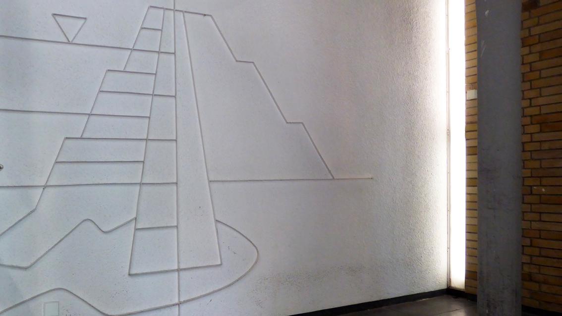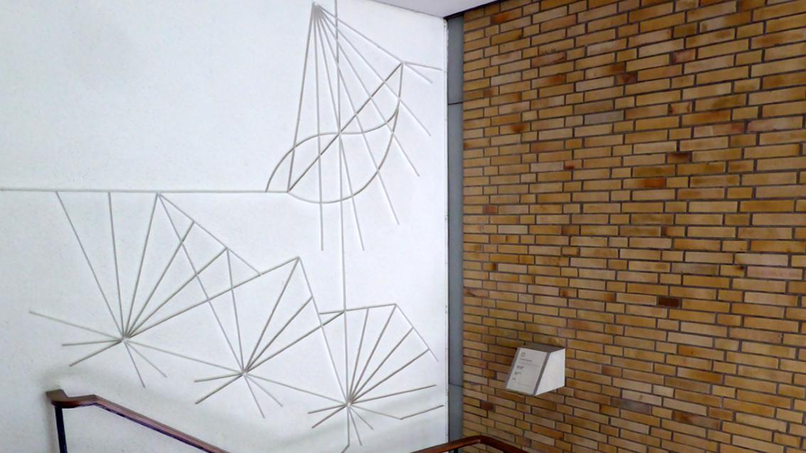 Im Treppenhaus des Instituts für Boden- und Felsmechanik am KIT befindet sich eine Arbeit des Künstlers Erwin Spuler, der in Karlsruhe unter anderem das große Wandrelief im Bürgersaal des Rathauses gestaltete. Elementare Einfachheit bestimmt das Relief: flache Leisten aus weiß lackiertem Metall bilden auf der hellen Wand ein Gefüge aus feinen Linien. Das Kunstwerk ist in einer ungegenständlichen Bildsprache ausgeführt, die jedoch an den Fächeraufbau der Stadt oder an Orte erinnert, die Energie ausstrahlen. Der Künstler studierte zwischen 1923 und 1929 an der Badischen Landeskunstschule bei Prof. Georg Scholz, Prof. Karl Dillinger und Prof. Ernst Würtenberger. 1948 übernahm er einen Lehrauftrag für Zeichnen und Modellieren an der Architekturfakultät der damaligen TH Karlsruhe, die sich heute KIT nennt.