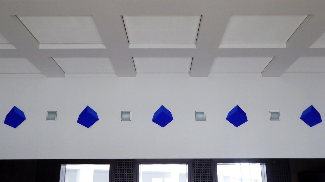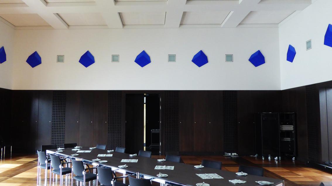 Im Siegfried-Buback-Saal der Bundesanwaltschaft befindet eine vielteilige Installation ultramarinblauer, scheinräumlich dargestellter Würfel des Malers Hans-Peter Reuter. Die Bildfolge besteht aus Varianten eines Motivs und umkreist mit reduzierten künstlerischen Mitteln Gestaltungsprinzipien wie Rasterung, Spiegelung und Symmetrie, die auch dem Gebäude von Oswald Mathias Ungers zugrunde liegen. Der Künstler wurde 1942 in Schwenningen am Neckar geboren. Im Jahre 1977 war er auf der Documenta 6 vertreten. Von 1985 bis 2007 hatte Hans-Peter Reuter eine Professur für Malerei an der Akademie der Bildenden Künste in Nürnberg inne.