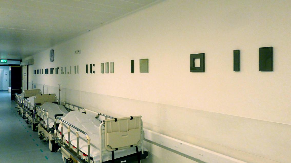 Im Flurbereich der Notfallaufnahme des städtischen Klinikums befindet sich eine vielteilige Installation der Karlsruher Künstlerin Bernadette Hörder. Sie wurde an der Staatlichen Akademie der Bildenden Künste in Karlsruhe ausgebildet. Das in der Tradition des Minimalismus stehende Kunstwerk besteht aus Einzelelementen unterschiedlicher Breite, jedoch immer gleicher Höhe und Tiefe. Transparente Grau-, Grün-, Orange- und Rottöne beleben zurückhaltend und leise einen langen und schmalen Raum, in dem von Notfällen betroffene Menschen und deren Angehörige auf die ärztliche Heilkunst hoffen.