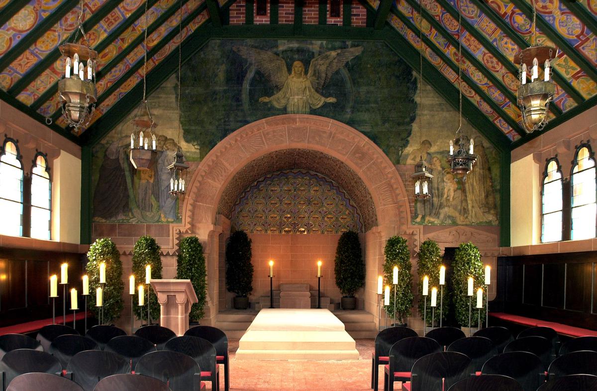 11.45 Uhr: Führung durch die heutige kleine Kapelle, das ehemalige Krematorium (Christiane Dietz, stattreisen Karlsruhe e.V.)