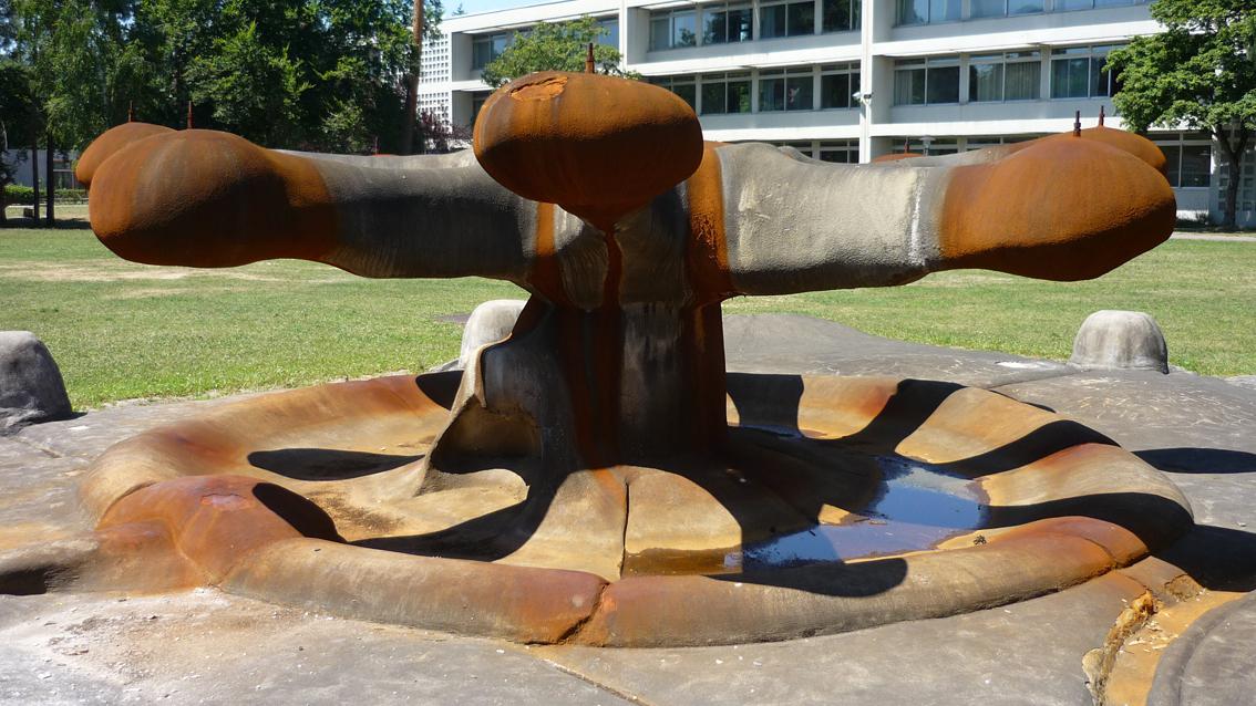 Der Künstler ist vor allem als Maler bekannt, anlässlich von Kunst am Bau Projekten arbeitete er allerdings auch plastisch. Er stand der Staatlichen Akademie der Bildenden Künste Karlsruhe zwischen 1976 und 1988 als Rektor vor. Klaus Arnold verstarb im Jahre 2009 in Karlsruhe. Sein zweiteiliges Brunnenprojekt im Innen- und Außenbereich der Europäischen Schule besteht aus vorwiegend organischen Formen, die sich in unterschiedlichen Höhen und Richtungen entfalten.