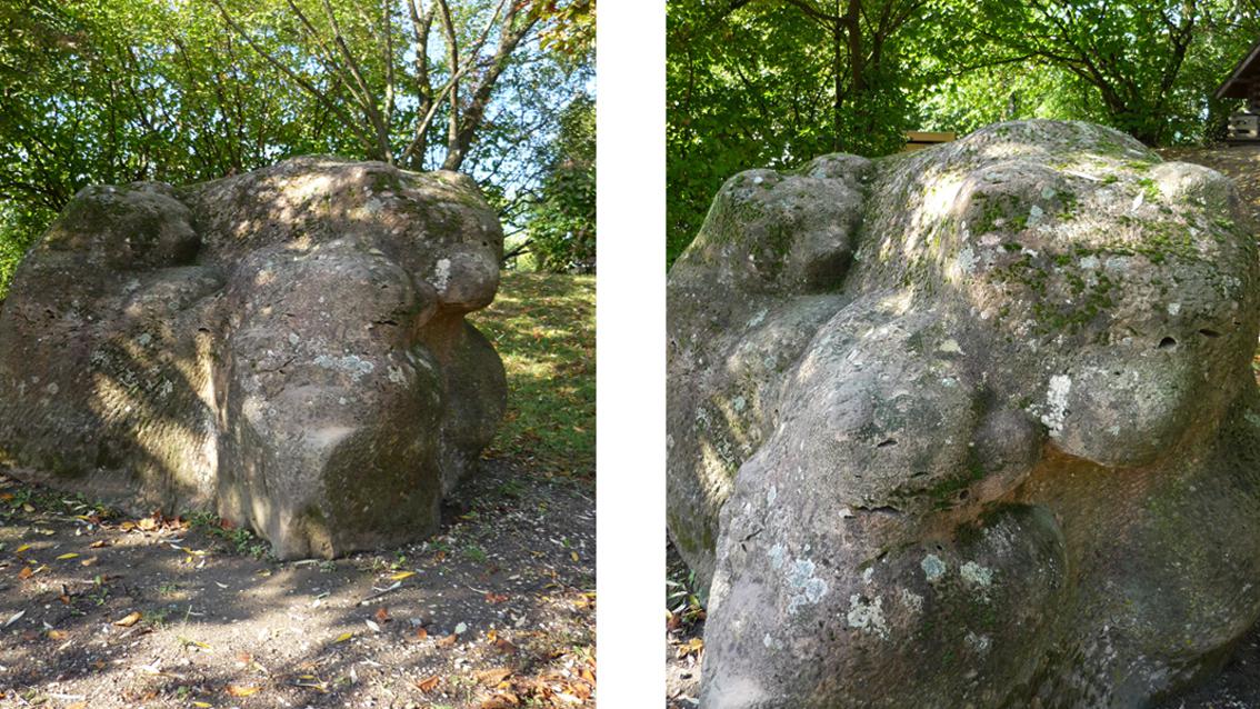 Auf den ersten Blick wirkt die Skulptur wie ein unbearbeiteter, steinerner Findling. Bei genauer Betrachtung offenbart der Sandstein eine Bärenfamilie, fein und zart aus dem Naturmaterial in einer einfachen Formensprache von Hand mit Steinbildhauerwerkzeug herausgearbeitet. Die Bärengruppe ist einer verspielt anmutenden Architektur zugeordnet. Skulptur und Gebäude bilden in ihren überschaubaren Ausmaßen einen angenehmen Gegensatz zu den benachbarten Hochhäusern.