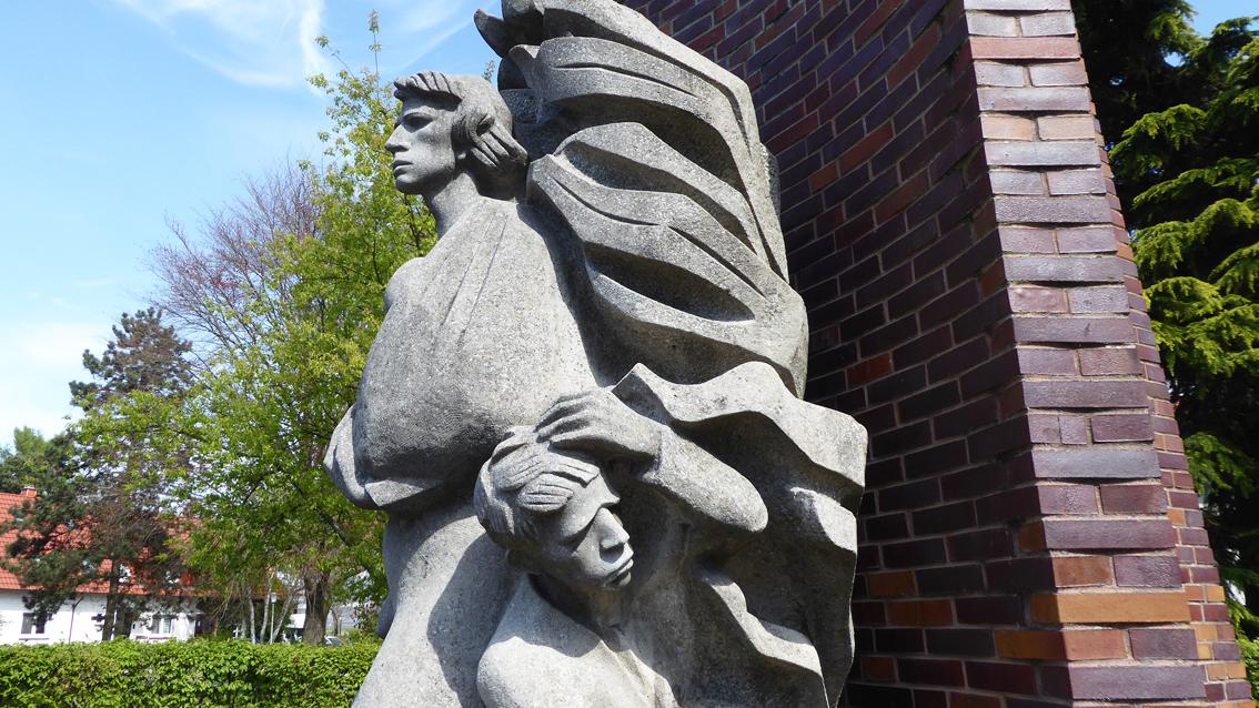 Zu Beginn seiner Karriere verdiente sich der 1902 in Karlsruhe geborene und 1991 in Pforzheim verstorbene Bildhauer seinen Lebensunterhalt bei der Staatlichen Majolika Manufaktur Karlsruhe. Künstlerisch steht Fritz Theilmann in der Tradition der Kieler Kunst-Keramik (KKK), die viele baubezogene Kunstwerke hervorbrachte, welche stilistisch in der Tradition des Jugendstil und Expressionismus stehen. Ab April 1925 leitete Fritz Theilmann in der KKK die Abteilung Baukeramik. In Neureut-Kirchfeld steht eine Figurengruppe, die vor allem an Sonnentagen wegen ihrer Schattenbildung sehr ausdrucksstark wirkt. Sie ist aus Stein geschlagen und steht vor einer Klinkerwand mit der Aufschrift ‚Versöhnung und Frieden‘.