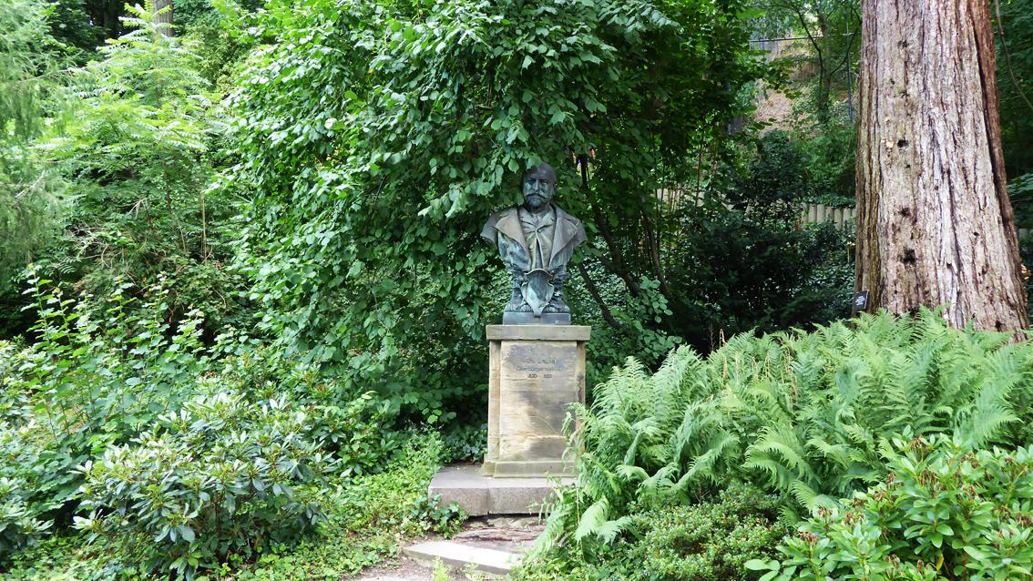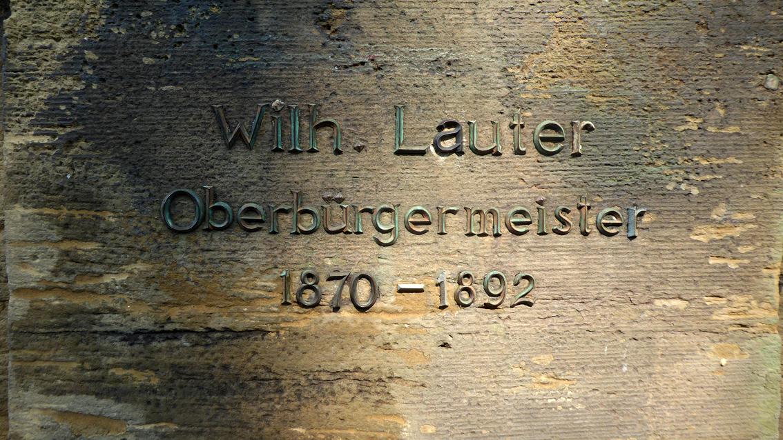 Die Bronzebüste von Hermann Volz zeigt in repräsentativer Pose Wilhelm Lauter, der als Karlsruher Bürgermeister ein großer Förderer des Zoologischen Stadtgartens war. Er ist Namensgeber des Lauterbergs, an dessen Fuß sich die Plastik befindet. Zwischen 1880 und 1919 lehrte Hermann Volz an der Staatlichen Akademie der Bildenden Künste in Karlsruhe. Er war unter anderem Lehrer von Heinrich Bauser, Hermann Föry und Emil Sutor, die ebenfalls mit Kunstwerken im Zoologischen Stadtgarten vertreten sind. Der Bildhauer wurde 1847 in Karlsruhe geboren und starb ebenda im Jahre 1941.