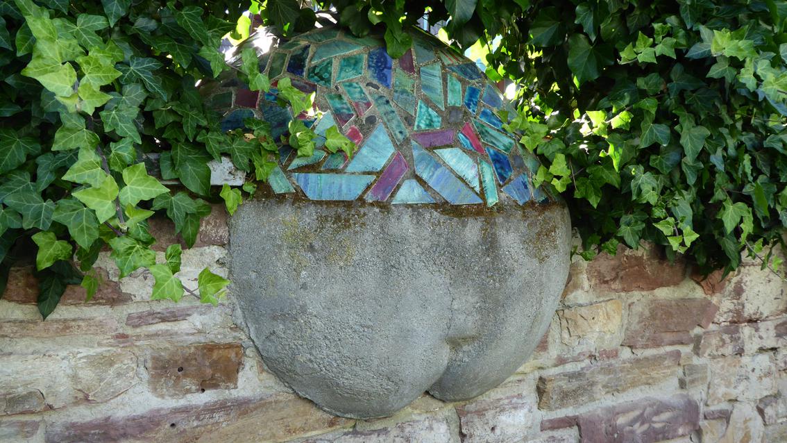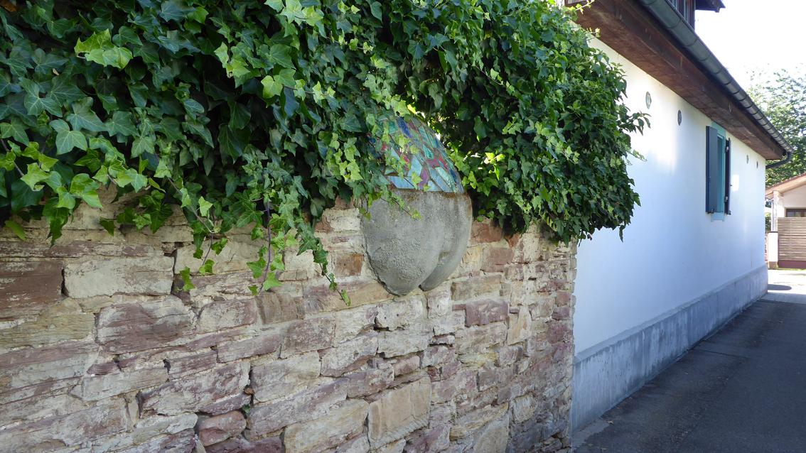 Das Künstlerpaar Barbara Jäger und OMI Riesterer fertigte im Jahre 1990 das 'Daxlander Ärschle' aus Beton und bunt glasierten Tonscherben. Die Arbeit wurde diskret auf Augenhöhe und zwischen Efeu in die vorhandene Natursteinmauer eingefügt. Das pralle Stück Kunst provoziert und erheitert zugleich. Der Standort befindet sich an einem engen Teil der Hahnenstraße, die den Schlaucherplatz mit der Vorderstraße verbindet. Barbara Jäger studierte von 1966 bis 1970 an der Staatlichen Akademie der Bildenden Künste Karlsruhe bei den Professoren Walter Herzger, Fritz Klemm und Horst Antes. OMI Riesterer absolvierte von 1968 bis 1977 ein Architekturstudium an der damaligen Technischen Hochschule Karlsruhe (heute KIT). Die künstlerische Zusammenarbeit des im öffentlichen Raum der Stadt Karlsruhe mehrfach vertretenen Paares startete bereits im Jahre 1970.