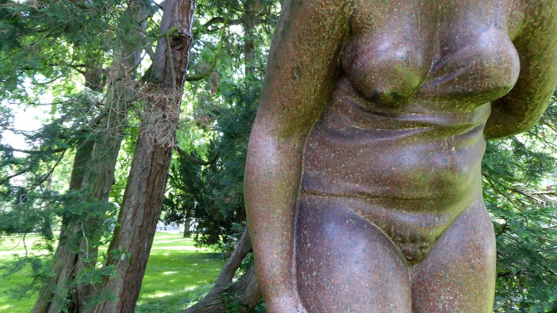 Der Bildhauer lehrte bis zu seiner Entlassung durch die Nationalsozialisten im Jahre 1935 an der Staatlichen Akademie der Bildenden Künste Karlsruhe. Bekannt wurde er mit seinen sozialkritischen Werken aus den 20er Jahren des letzten Jahrhunderts. Repräsentative Werke befinden sich in der benachbarten Staatlichen Kunsthalle. Seine ‚Große Badende‘, eine Arbeit des Spätwerks, zeigt eine vollschlanke Frauengestalt, die sich in der Ausführung an klassischen Vorbildern orientiert.