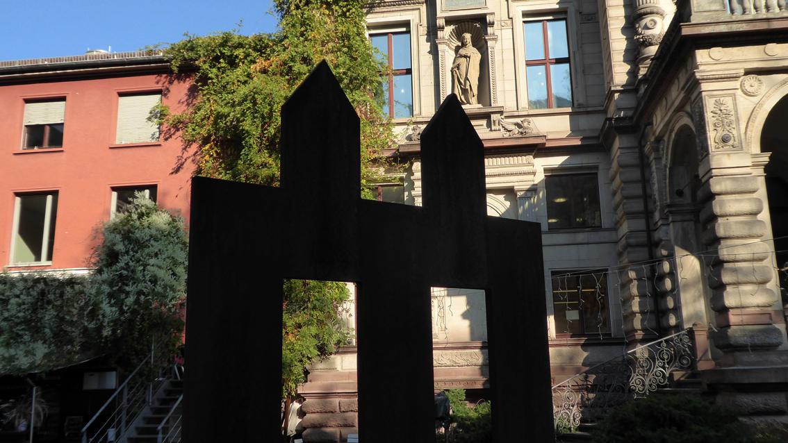Die Plastik der Absolventin der Staatlichen Akademie der Bildenden Künste Karlsruhe beschreibt in einer elementaren Formensprache und mit dem einfachen Material Stahl die Beziehung von Weg und Haus: Drei schmale Wege münden in zwei stilisiert gestaltete Häuser. Die Arbeit hat zeichenhaften Charakter. Das Werk befindet sich im Gartenbereich des Prinz-Max-Palais.
