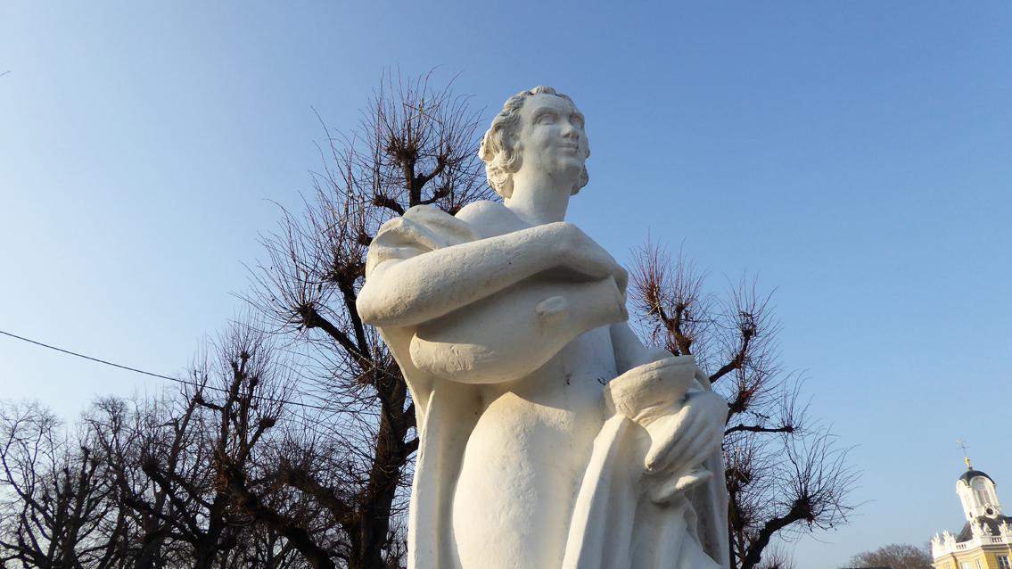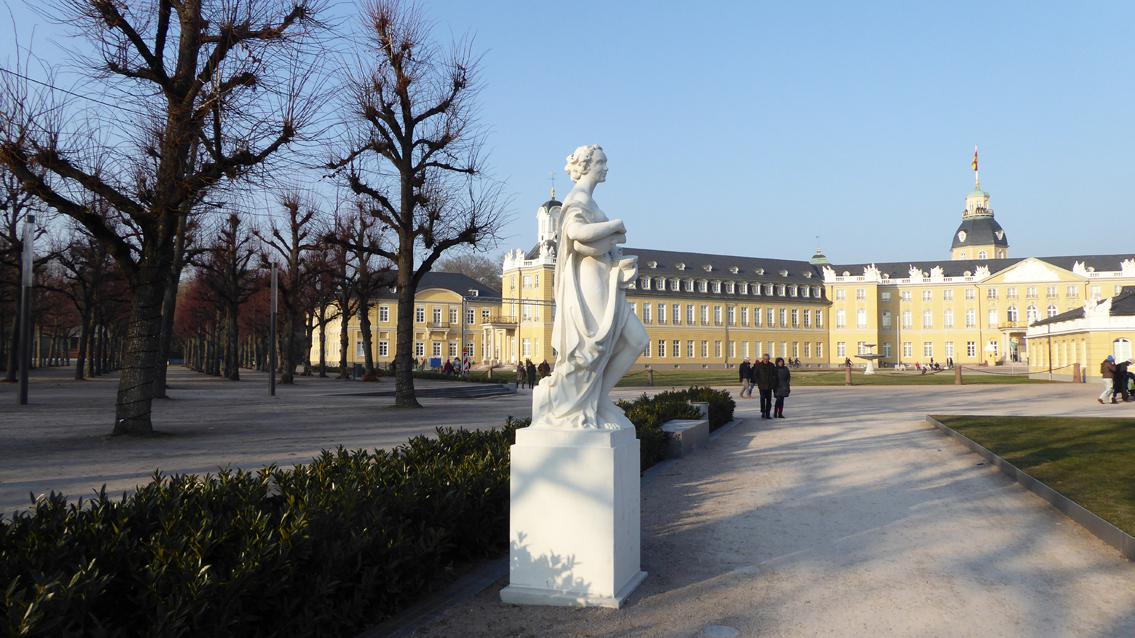 Hebe ist in der griechischen Mythologie die Göttin der Jugend und entspricht der Juventas der Römer. Die plastische Neudeutung von Emil Sutor ist eine freie Nachempfindung der Originalarbeit von Ignaz Lengelacher, die witterungsbedingt ersetzt werden musste. Seit der Bundesgartenschau des Jahres 1967 befindet sich der weiß gefasste Betonguss mit der Darstellung der Hebe auf dem westlichen Teil des Schlossplatzes.