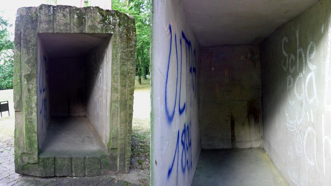 Die Steinskulptur ‚Hohlblock II‘ bildet einen begehbaren Raum mit einem glattgeschliffenen Innen und einem rauen Außen. In ihrer archaischen Anmutung repräsentiert sie die Urform von Behausung. Die Größe nimmt Bezug zum menschlichen Maß. Das Kunstwerk steht für elementare Gegensätze, ausgeführt in entschiedener Einfachheit. Hans Michael Franke wurde am 26.September 1963 in Hanau geboren. Von 1988 bis 1993 studierte er Bildhauerei an der Staatlichen Akademie der Bildenden Künste in Karlsruhe bei Hiromi Akiyama. Er verstarb am 14.November 2014 in Sinsheim.