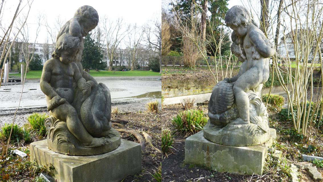 Die Gruppe befindet sich auf einer Insel des Schwanensees, nahe dem Lauterberg, die nur im Winter über einen Steg begehbar ist. Der Künstler verbindet die Kinder und den Schwan zu einer plastischen Einheit. Seine Formensprache ist von klassischen Vorbildern beeinflusst. Die Plastik fügt sich schlüssig in den Kleinkosmos der Insel ein.