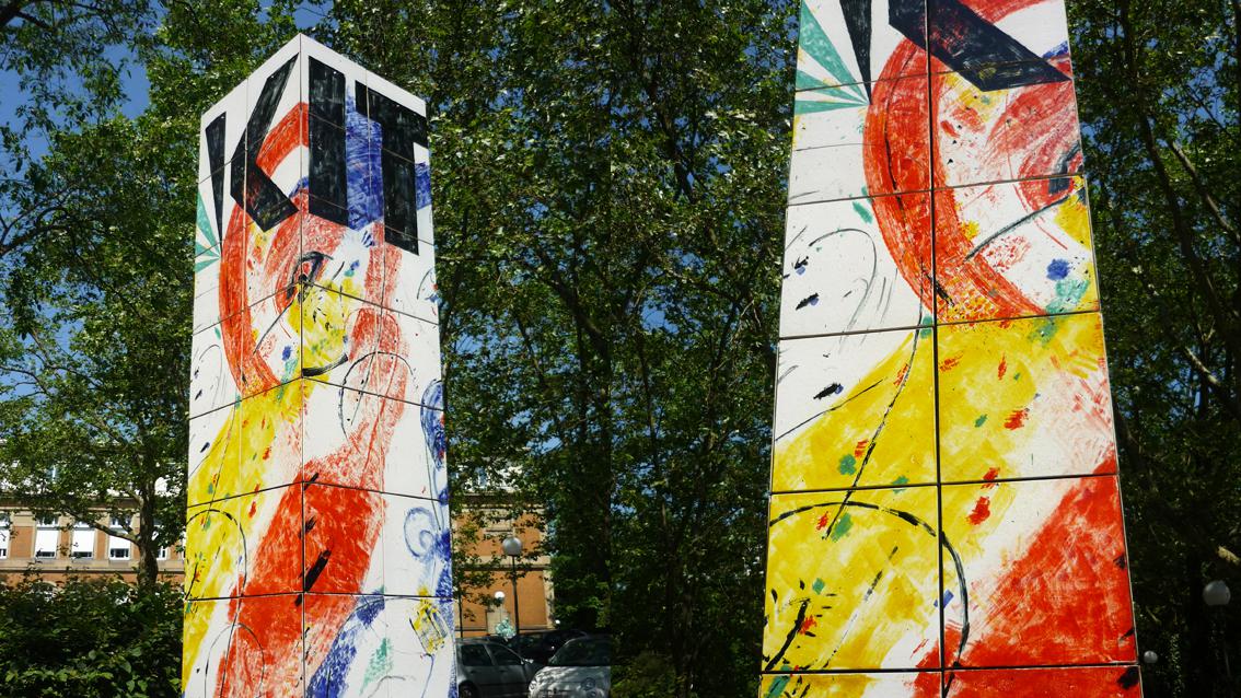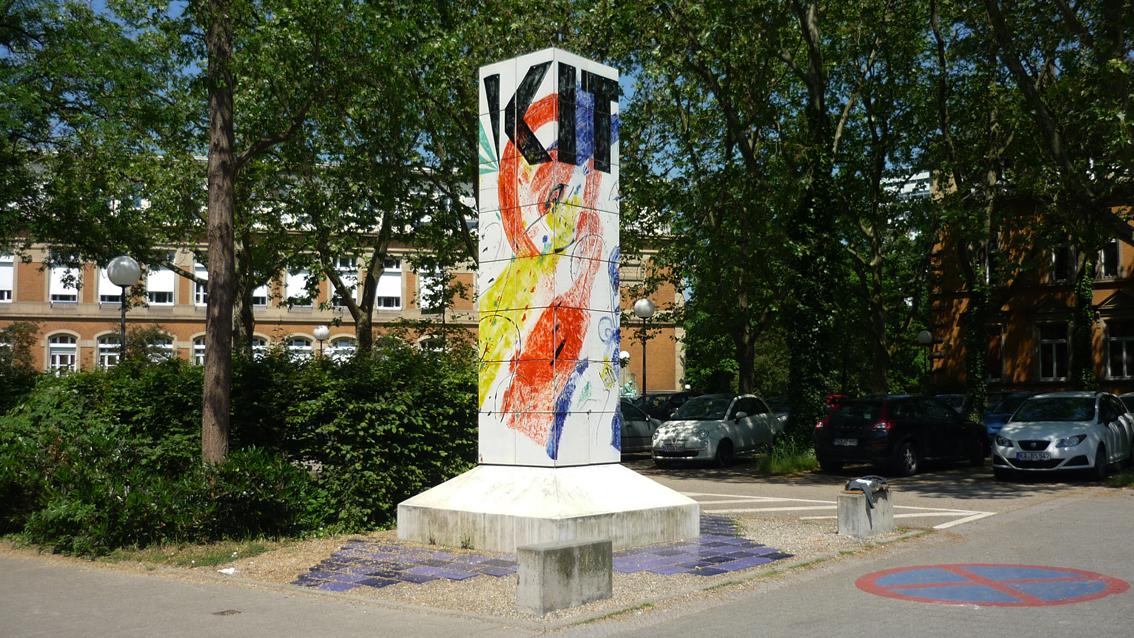 Durch Unterstützung vieler Sponsoren konnte dieses Werk an einem zentralen Platz des Campus Süd des KIT verwirklicht werden. Es entstand in Zusammenarbeit des Künstlers mit der Staatlichen Majolika Manufaktur Karlsruhe. Die pfeilerartige Plastik ist bestimmt von expressiver Farbigkeit und modularer Rasterung. Die freie, gestische Malerei und die klar konturierten, quadratischen Kacheln bilden einen deutlichen Gegensatz.