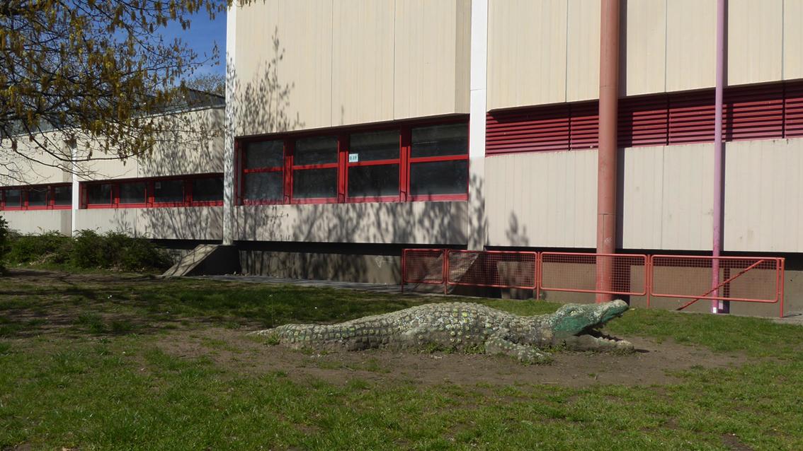 Zwischen 2006 und 2011 wurden unter der künstlerischen Leitung von Tina Zingraff mehrere Kunstvermittlungsprojekte im öffentlichen Raum verwirklicht. Gegenstand der Vorhaben war die künstlerische Deutung nicht heimischer, exotischer Tiere. Sie wurden mit Stahlgerüst, Schnellzement Ummantelung und Farbe gefertigt und vorwiegend vor Schulen aufgestellt. Die Ausführenden waren Schülerinnen und Schüler verschiedener Karlsruher Schulen. Unterstützt wurden sie von dem Kulturamt, dem ZKM, dem JUKS, dem Kinderbüro, dem Zoologischen Stadtgarten und einigen städtischen Ämtern. Auf einer Grünfläche vor dem Schulgarten des Neureuter Schulzentrums befindet sich ein etwa lebensgroß wiedergegebenes Krokodil. Das Reptil ist so in Szene gesetzt, dass es sich auf dem Gelände mit weit aufgerissenem Rachen schleichend fort zu bewegen scheint.