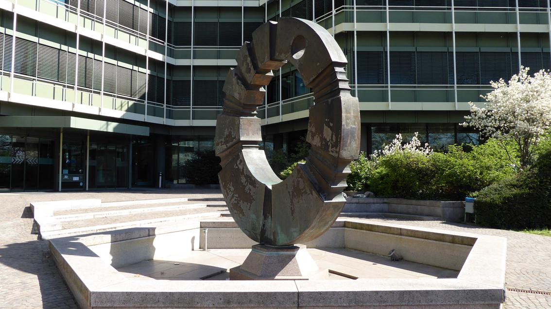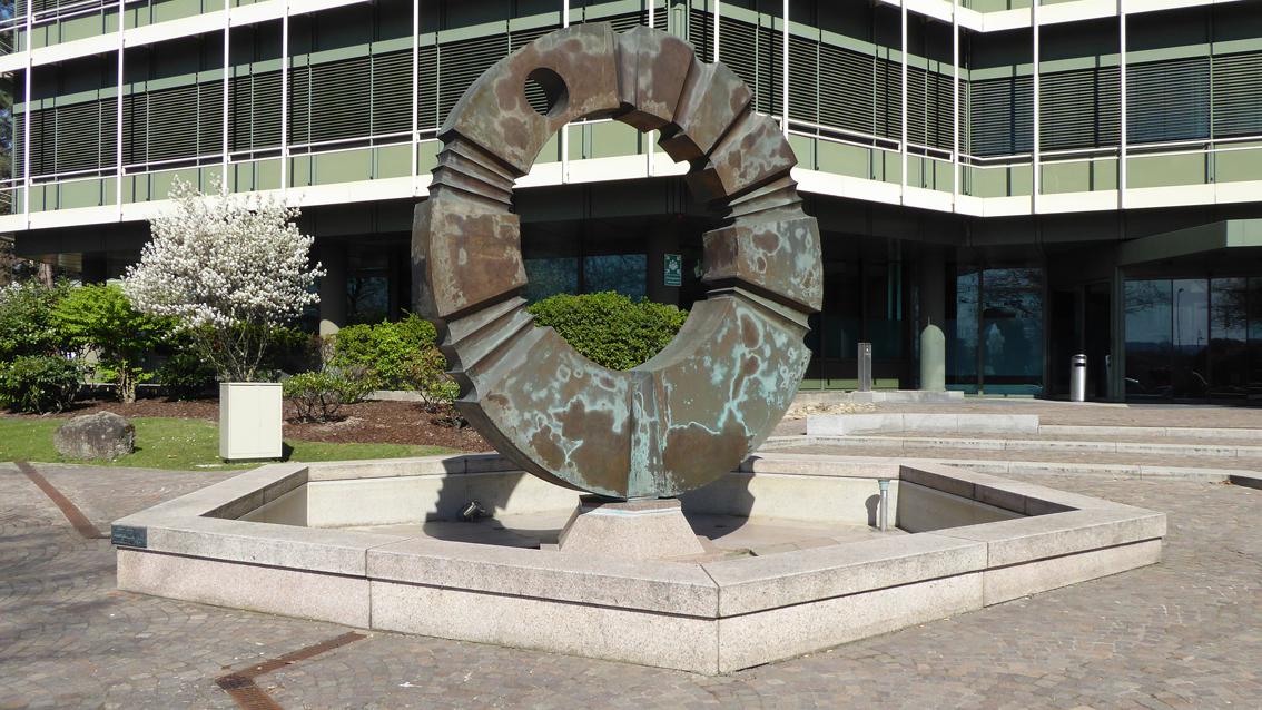 Das ‚Lebensrad‘ bildet das Zentrum einer Brunnenanlage in der Südweststadt. In einer ungegenständlichen Formensprache symbolisiert das mit Einschnitten und Durchbrüchen versehene Kunstwerk das Kommen, Sein und Gehen als fortlaufenden Prozess. André E. Bucher, der sich in seiner Kunst mit elementaren, existentiellen Aspekten beschäftigte, fertigte auch die Plastik ‚Erkenntnis‘ vor dem Bundesverfassungsgericht. Der Künstler verstarb am 6. Juni 2009 in Genf.