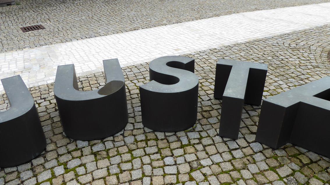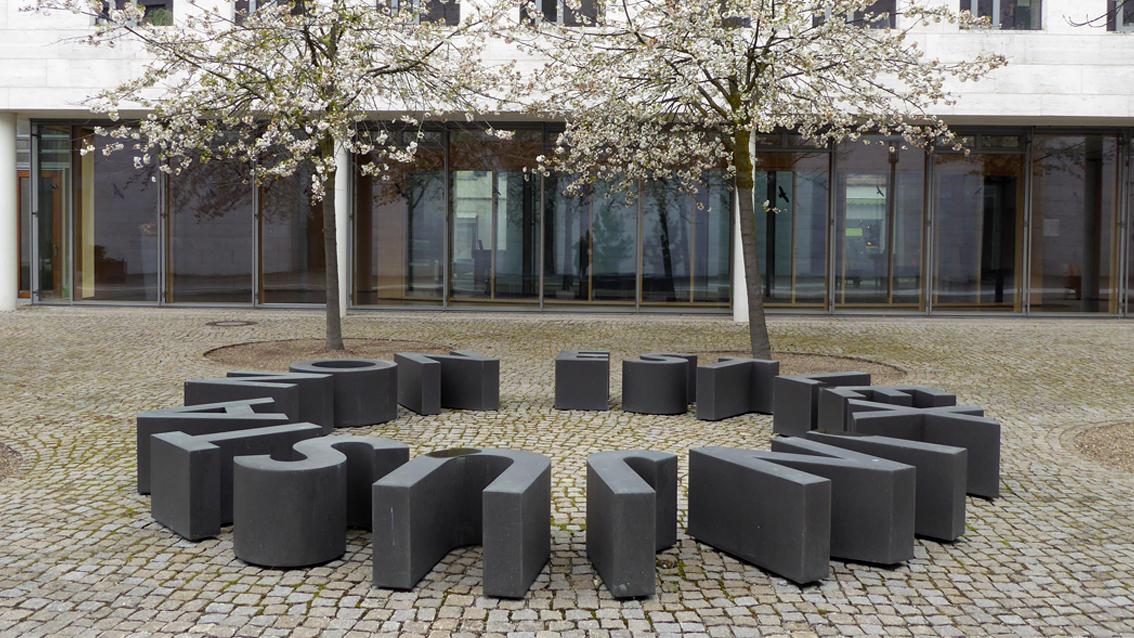 Die Bodenplastik des im Allgäu geborenen und an der Staatlichen Akademie der Bildenden Künste in München ausgebildeten Künstlers ging im Jahre 1998 als Siegerarbeit aus einem Kunst am Bau Wettbewerb für den Erweiterungsneubau des Bundesgerichtshofes hervor. Im Erläuterungstext zu seiner Arbeit schrieb der Künstler: ‚Die Skulptur zitiert den weithin bekannten Satz LEX INJUSTA NON EST LEX, nimmt ihn jedoch aus seiner linearen Ordnung und überführt ihn in eine Kreisform. Damit entfällt das ursprünglich prädikative ‚lex‘. Fährt man beim Lesen fort, kann das substantivische ‚lex‘ dessen Funktion übernehmen…‘. Im Innenhof des Bundesgerichtshofes versteht sich das mehrteilige Werk aus dunkel patinierter Bronze als elementar gestaltete künstlerische Setzung mit einer zum Nachdenken anregenden Aussage über Recht, Unrecht und Gesetz. Zugleich lädt die Plastik aus 16 Teilformen, die sich auf einem Durchmesser von 5 Metern zum Ring fügen, die vorbei Flanierenden dazu ein, sich wie selbstverständlich auf ihr niederzulassen. Rudolf Herz führte zahlreiche Projekte im öffentlichen Raum aus, häufig mit dem im Jahre 1995 verstorbenen Künstlerkollegen und Theoretiker Thomas Lehnerer. Sein Werk wurde mehrfach ausgezeichnet.