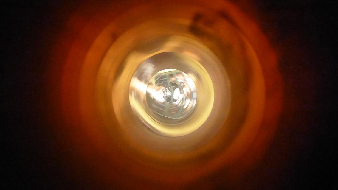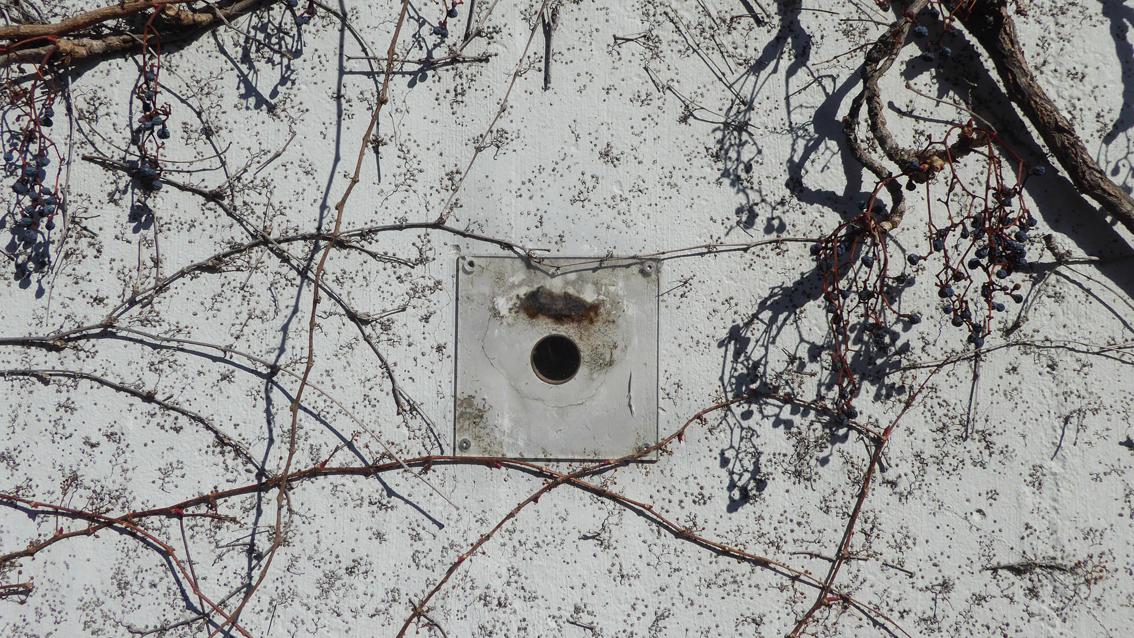 Die Installation der Künstlerin befindet sich an der Westseite des Kirchenbaus. Auf Augenhöhe verbindet ein poliertes Kupferrohr den sakralen Innenraum mit dem profanen Außenraum. Außen verweist ein unspektakuläres Loch auf die minimalistische Intervention der Bildhauerin, die an der Staatlichen Akademie der Bildenden Künste Karlsruhe bei Prof. Hiromi Akiyama studierte. Innen leuchtet ein ca. 42 mm großer Punkt je nach Stand der Sonne in unterschiedlichen Rot-, Orange- und Gelbtönen. Michaela Kölmel lehrte ab 2002 bis zu ihrem Tode im Jahre 2007 die Grundlagen der Gestaltung an der Hochschule in Mainz.