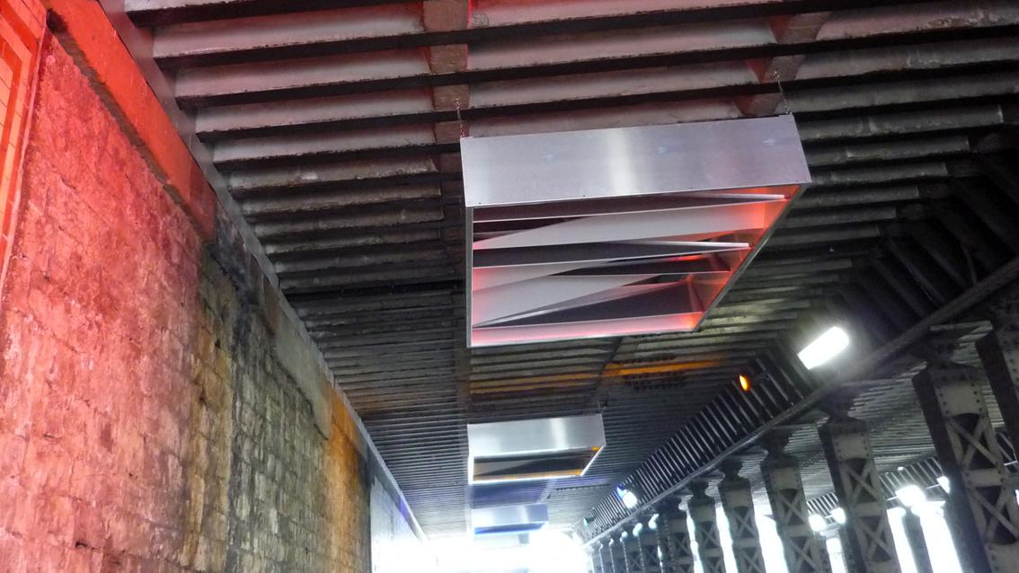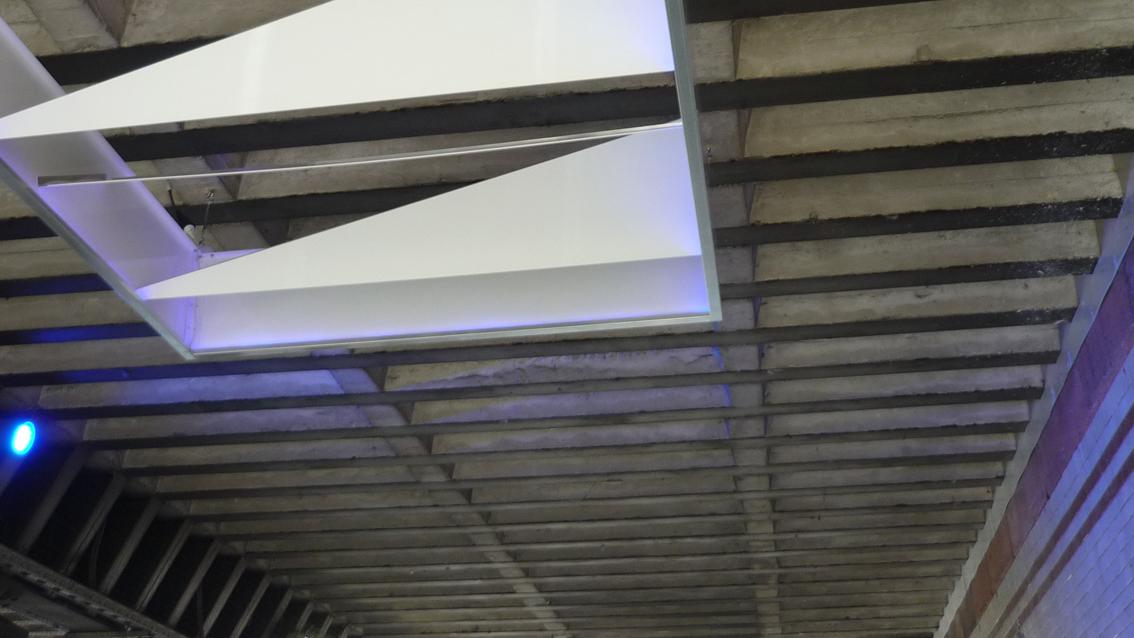 Die Lichtinstallation entstand im Rahmen eines Wettbewerbs unter Studierenden anlässlich des Stadtgeburtstages im Jahre 2015. Betreut wurde die Arbeit von der Karlsruher Künstlerin Stefanie Lampert. Mit einfachen Mitteln (Leichtmetallkästen, LED-Lichtbänder) verwandelten Gómez/Wörn mit ihrer Siegerarbeit die schlichte Unterführung in einen magischen Raum der Kunst.