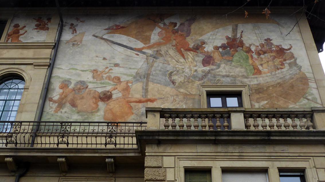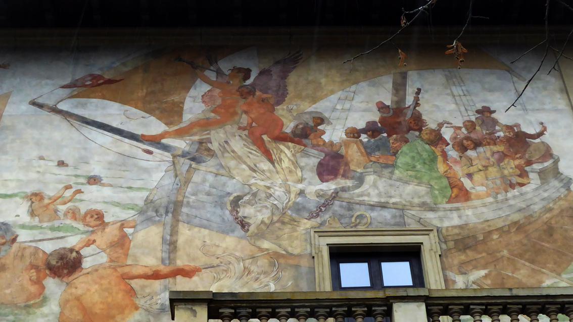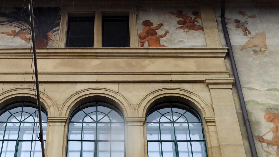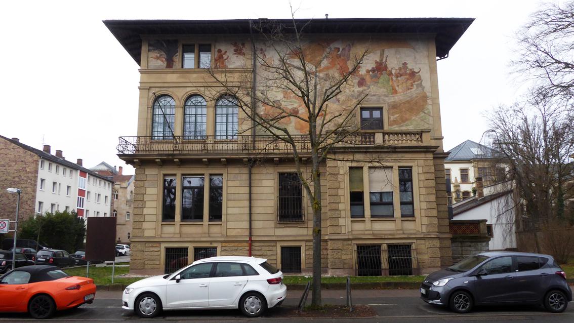 Ecke Reinhold-Frank-Straße/ Jahnstraße befindet sich die Villa Schönleber. Das Gebäude wurde im Jahre 1888 von dem Architekten Ernst Otto Tafel im Stile der Neorenaissance für den Landschaftsmaler Gustav Schönleber entworfen und 1889 fertiggestellt. Gustav Schönleber lehrte von 1980 bis 1917 an der benachbarten Großherzoglichen Akademie der Bildenden Künste, die heute den Namen Staatliche Akademie der Bildenden Künste Karlsruhe trägt. Nach einer umfassenden Sanierung der Villa durch Einsiedel Architekten und H.P. Matheis architektur + energie (beide Stuttgart) in den Jahren 2015 bis 2017 befinden sich in dem Gebäude aktuell die Dienstateliers der Professor*innen. Im Zentrum des umfangreichen Bildprogramms befindet sich an der Ostfassade ein großformatiges Wandgemälde mit dem Thema: Narrenschiff. Das Motiv basiert auf einer spätmittelalterlichen Moralsatire, bei der eine Menschengruppe per Schiff Kurs zum fiktiven Land Narragonien aufnimmt. Die literarische Vorlage schildert augenzwinkernd die Laster und Eigenarten einer bunt gemischten Besatzung und hält auf diese Weise der Nachwelt den Spiegel hinsichtlich ihrer zum Teil haarsträubenden Handlungsweisen vor.