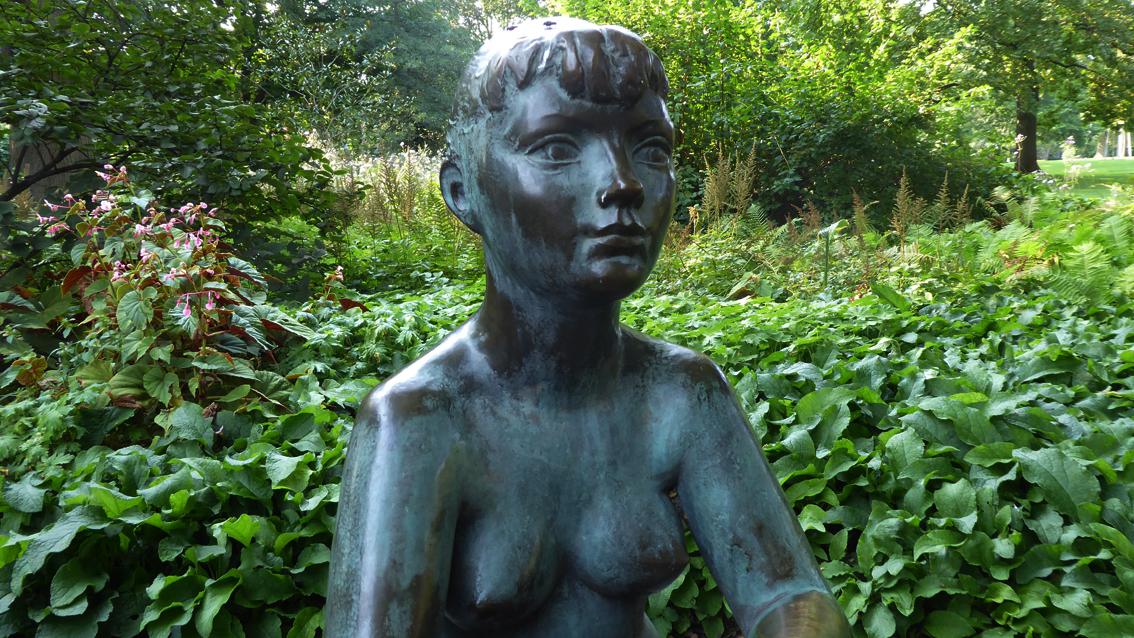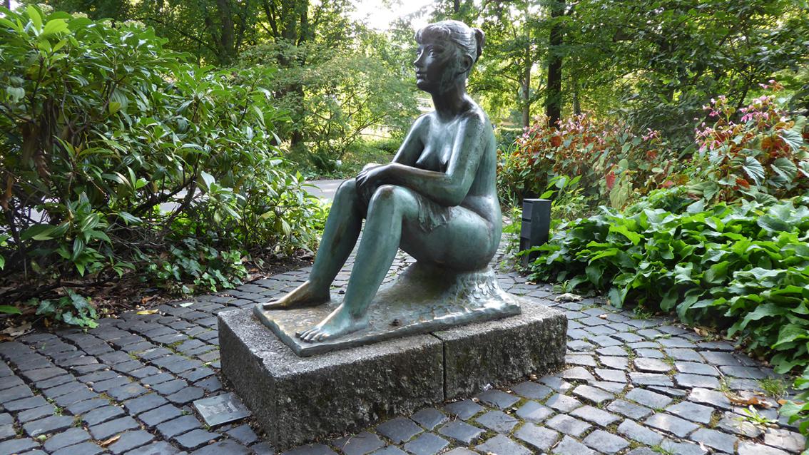 Das etwas unterlebensgroße Mädchen sitzt nahezu unbekleidet auf einem niedrigen Sockel, den Blick in eine unbestimmte Ferne gerichtet. Die Körperformen sind vereinfacht dargestellt, die Komposition ist fast symmetrisch. Naturnahe Gegenständlichkeit und eine gewisse Tendenz zur Abstraktion begegnen sich in dieser Bronzearbeit, die somit ein typisches Beispiel der Kunst im öffentlichen Raum der 50er Jahre des vergangenen Jahrhunderts ist.