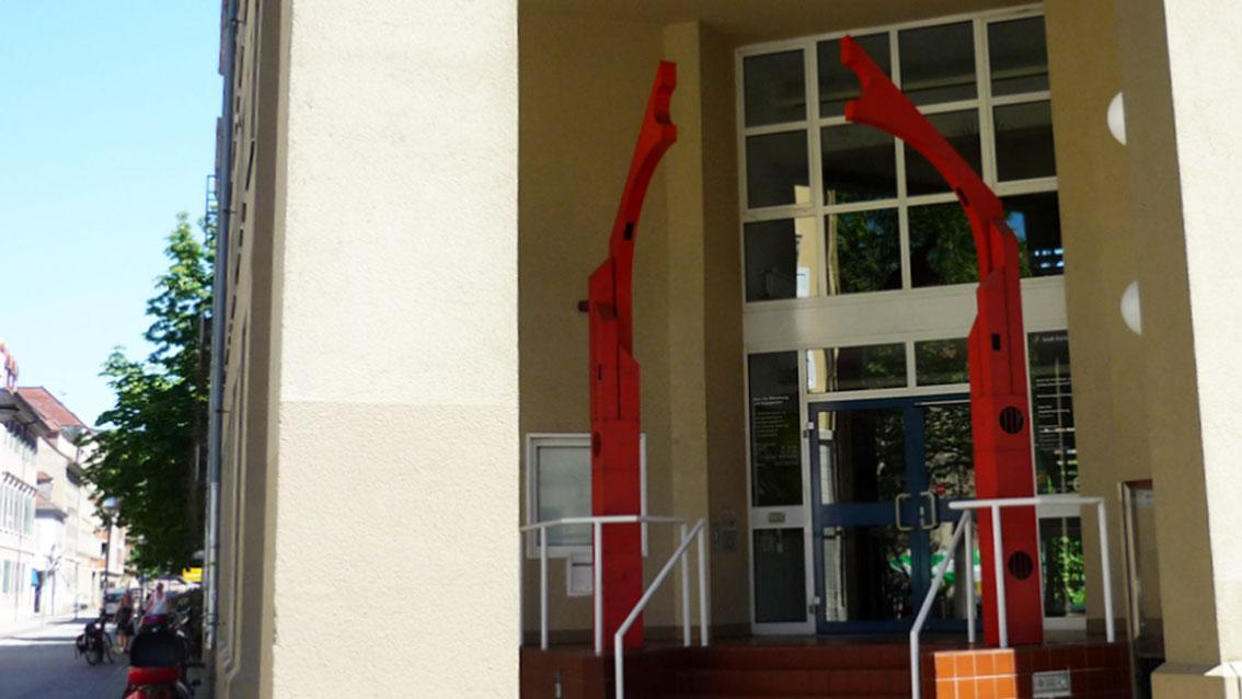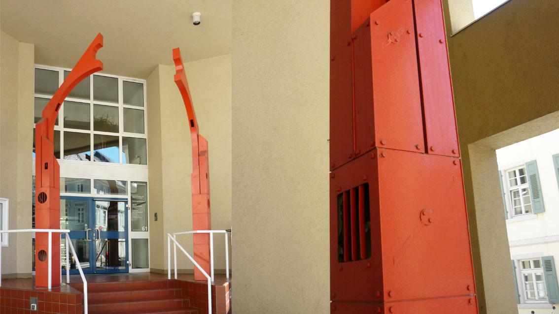 Die Plastik des Schweizer Architekten und Künstlers, der an der Staatlichen Akademie der Bildenden Künste Karlsruhe lehrte, befindet sich im Eingangsbereich des Amtes für Hochbau und Gebäudewirtschaft. Zwei rot lackierte Türme bilden ein Tor, das die Ankommenden mit einer plastischen Geste der Offenheit begrüßt. Die beiden Türme sind mit Öffnungen versehen, die den Blick ins Innere erlauben. Walter M. Förderer starb am 29. Juni 2006.