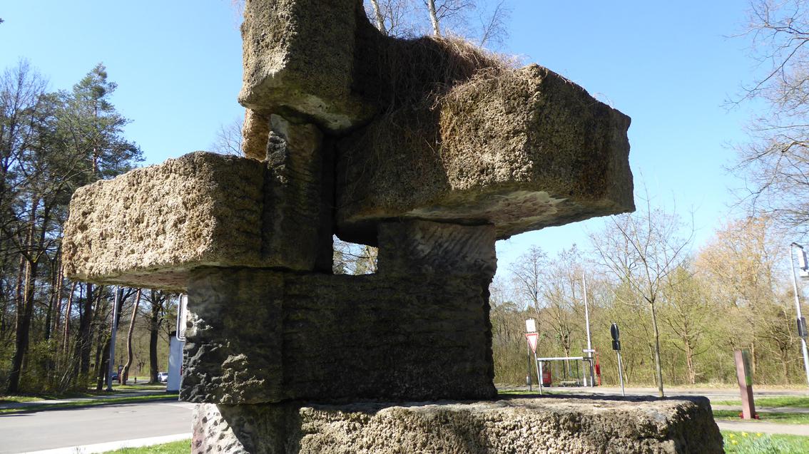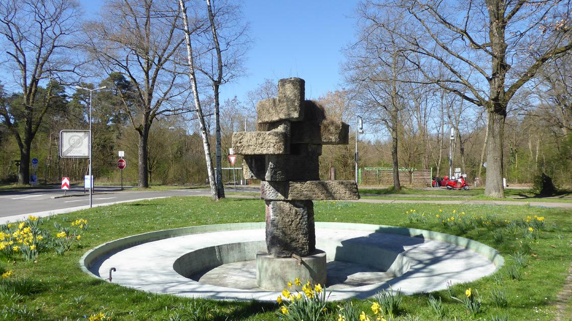 Der Künstler erhielt 1954 den Kunstpreis der Stadt Karlsruhe für Bildhauerei. Neben Skulpturen im öffentlichen Raum gestaltete Frido Lehr zusammen mit seiner Frau, der Malerin Eva Lehr, zahlreiche Innenräume von Kirchen in Süddeutschland. Der Waldstadt-Brunnen setzt sich aus übereinander geschichteten Steinquadern zusammen. Die Teile sind so geordnet, dass das Ganze je nach Standort an eine archaische Figur oder einen abstrahierten Kopf erinnert.