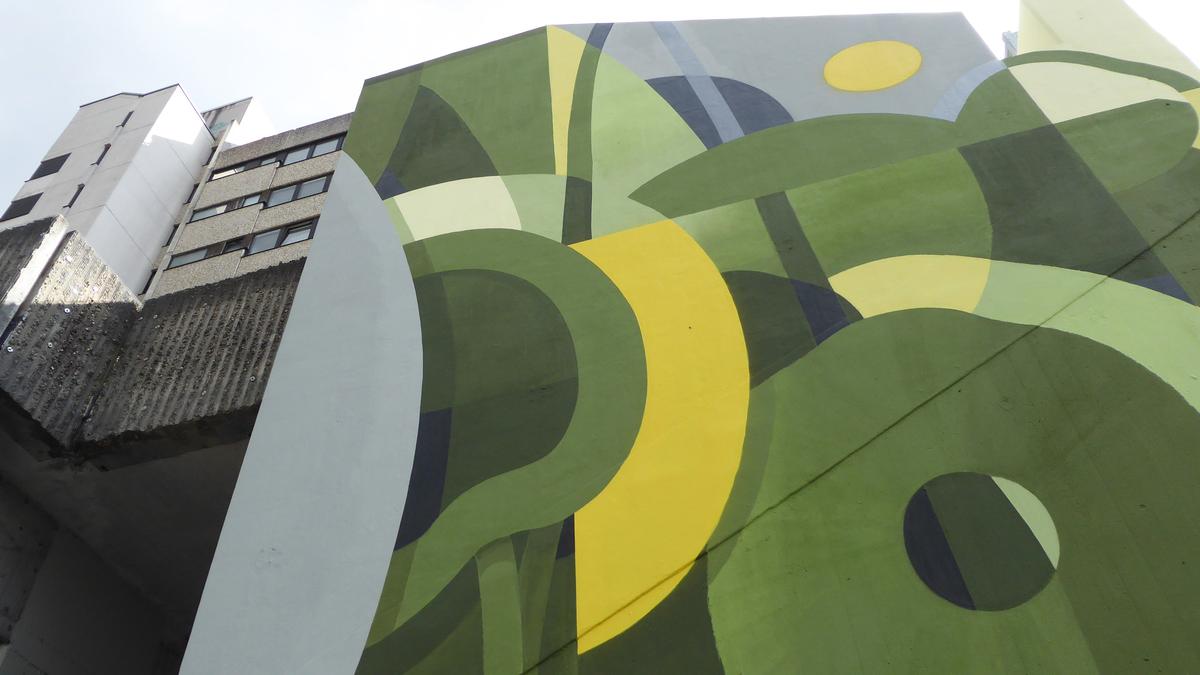 Kriegsstraße/ Ritterstraße ein monumentales abstraktes Wandbild,