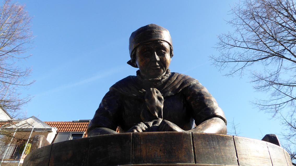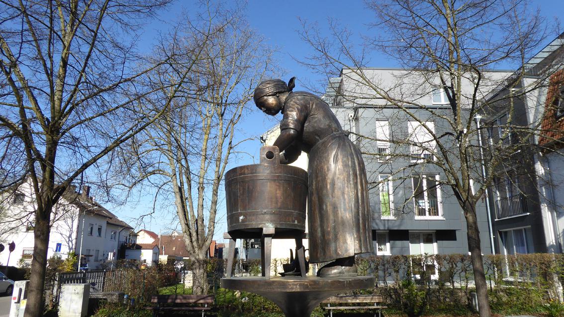 Der Wäscherinnenbrunnen des Karlsruher Steinmetz und Bildhauers Gerhard Karl Huber würdigt die Frauen Bulachs, die früher neben der Landwirtschaft einen Teil des Einkommens dazu verdienten, indem sie die Wäsche der Städter machten. Diese Tatsache unterstreicht auch die Inschrift am steinernen Becken: ‚Bulachs Ruhm als Dorf der Wäscherinnen entstand durch den Fleiß seiner Frauen, das weiche Albwasser und seine stadtnahe Lage‘. Gerhard Karl Huber lebte von 1941 bis 2023.