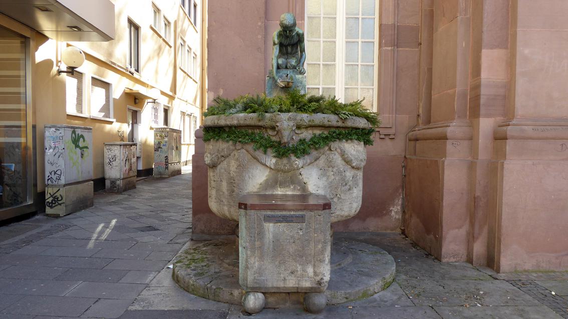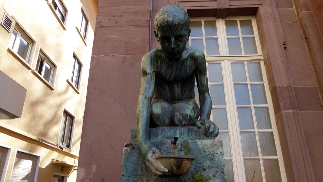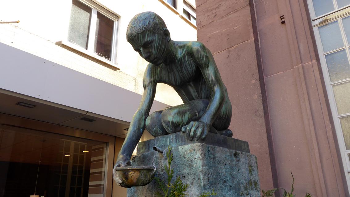 Der Künstler studierte unter anderem zwischen 1900 und 1905 an der Großherzoglichen Badischen Kunstschule Karlsruhe bei Prof. Hermann Volz, dessen Meisterschüler er ab 1902 wurde. 1905 erhielt der Bildhauer den Auftrag zur Gestaltung der Brunnenanlage mit dem wasserschöpfenden Knaben, den er in einem detailgenauen Naturalismus modellierte und danach in Bronze gießen ließ. Brunnenpatin ist Sigrun Rosswag, deren Vater als Achtjähriger dem Künstler Modell stand.