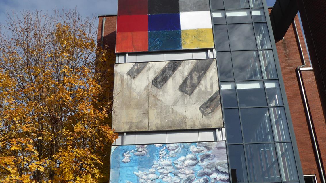 Der Maler ist Mitglied des Künstler*innenvereins ‚PlakatWandKunst‘. Seit Jahren ist diese Gruppe in der Stadt Karlsruhe, in der Region und darüber hinaus mit temporären Aktionen im öffentlichen Raum aktiv. Verbindendes Konzept ist, dass die individuellen, künstlerischen Ideen auf Holzplatten und in dem Format 260 cm auf 360 cm verwirklicht werden. Die Träger der Raumfabrik haben Werke einzelner Künstler*innen der Gruppe in den vergangenen Jahren erworben und an verschiedenen Stellen der Gebäude des Anwesens fest installiert. Um ein ‚wohltemperiertes‘ Klavierspiel in allen Tonarten zu ermöglichen, wurden im 17. Jahrhundert die mittleren Töne des Instruments weicher gestimmt. Rainer Braxmaier überträgt in seiner Arbeit einen Begriff der Musik auf die Bildende Kunst und deutet ihn mit den Mitteln der Malerei um. Der im Jahre 1949 geborene Künstler studierte in den 70er Jahren des letzten Jahrhunderts an der Staatlichen Akademie der Bildenden Künste in Karlsruhe bei Prof. Emil Schumacher. Er lebt und arbeitet in Oberkirch.
