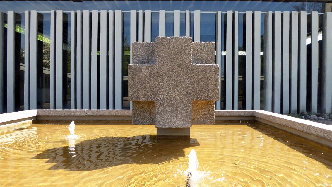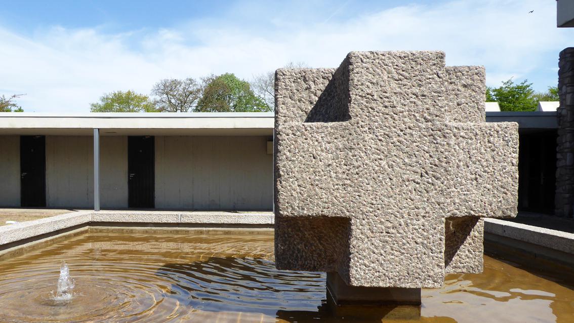 Rainer Disse war ein Schüler von Egon Eiermann an der Architekturfakultät der damaligen Technischen Hochschule Karlsruhe, dem heutigen KIT. In den 60er Jahren des letzten Jahrhunderts machte er sich als Sakralbauarchitekt in Süddeutschland einen Namen. Zwischen 1961 und 1964 entwarf und realisierte er die Kapelle und den Würfelkreuz-Brunnen des Hauptfriedhofs in Neureut. Die Brunnenanlage besteht aus einem markanten Würfelkreuz aus Gertelbachgranit (ca. 170/170/170 cm) und zwei kleinen Fontänen, die das Wasser immer leicht in Bewegung halten. Architektur, Platz und Brunnen bilden ein harmonisches Ganzes, das Würde und Ruhe ausstrahlt. Rainer Disse verstarb im Jahre 2008 in Karlsruhe.