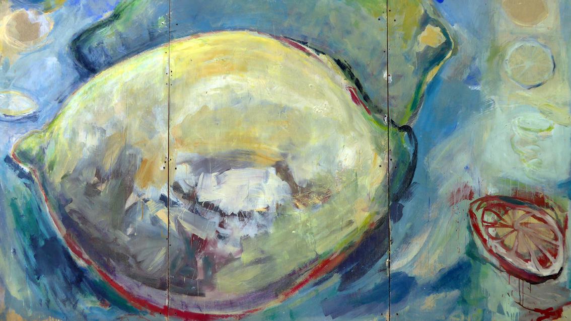 Die Malerin ist Mitglied des eingetragenen Vereins: Plakat Wand Kunst. Seit Jahren ist diese Gruppe in der Stadt Karlsruhe, in der Region und darüber hinaus mit temporären Aktionen im öffentlichen Raum aktiv. Verbindendes Konzept ist, dass die individuellen, künstlerischen Ideen auf Holzplatten und in dem Format 260 cm auf 360 cm verwirklicht werden. Die Träger der Raumfabrik haben Werke einzelner Künstler*innen der Gruppe in den vergangenen Jahren erworben und an verschiedenen Stellen der Gebäude des Anwesens fest installiert. Die Arbeit von Gabi Streile ist bestimmt von großen malerischen Gesten, die in der Tradition des gegenständlichen wie dem abstrakten Expressionismus stehen. Aus der Ferne betrachtet ist der Bildgegenstand gut zu erkennen, von nahem wahrgenommen verselbständigen sich die malerischen Mittel. Gabi Streile wurde im Jahre 1950 in Karlsruhe geboren. Zwischen 1970 und 1976 studierte sie an der Staatlichen Akademie der Bildenden Künste bei den Professoren Klaus Arnold, Peter Dreher, Harry Kögler und Franz Bernhard.